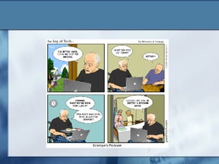 2. A podcast is a method of publishing audio broadcasts over the internet which allows users to subscribe to new files, usually MP3s.