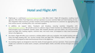 Our booking engines are designed to meet the needs of travel agencies and tour operators. These powerful tools enable your customers to easily search, compare, and book flights, hotels, and other services through your travel portal. For more details, please visit our website: https://www.flightslogic.com/hotel-and-flight-api.php