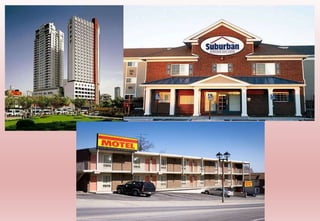 This document discusses hotels, including: