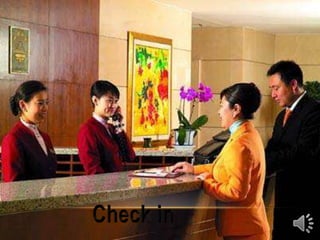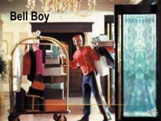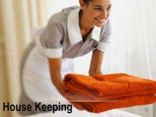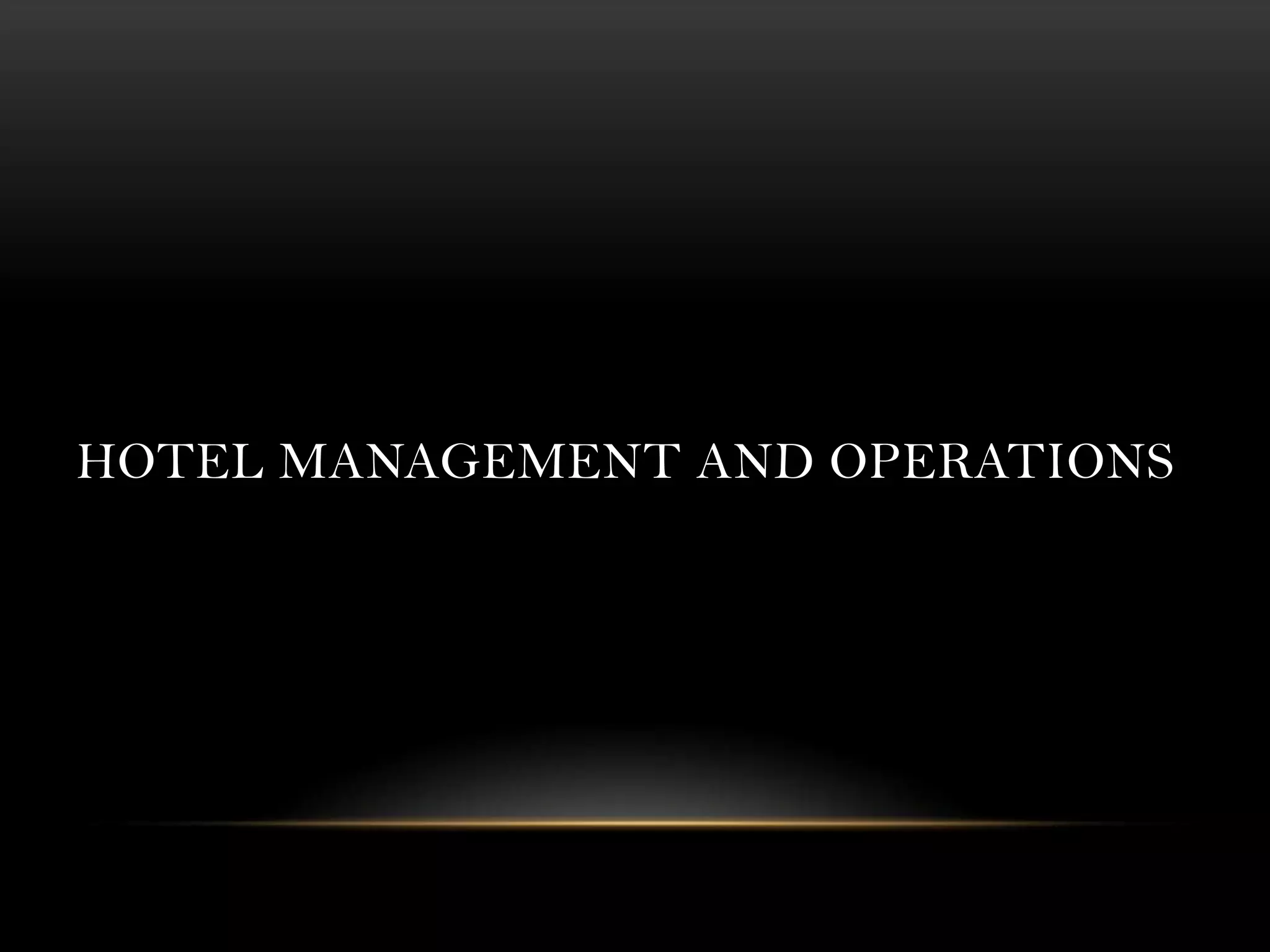 This document provides an organizational chart and overview of the departments in a hotel management structure. It outlines the general manager as the head of the organization overseeing departments such as marketing, human resources, and accounting. It then describes the key service departments including front desk operations, housekeeping, maintenance, security, and food and beverage. Each department is responsible for specific operational functions like reservations, check-in/out, cleaning rooms, maintenance, and food service. The document provides details on the roles and responsibilities within each department to support hotel operations and deliver services to guests.