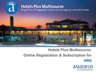 Hotels Plus Multisource allows users to access hotel rates from HRS in two ways: public rates that are freely available or private negotiated rates that require entering a customer key provided by HRS. The user can switch between public and private rates in the registration panel. No online subscription to HRS is needed, but access to corporate negotiated content is based on an offline contract between the corporation and HRS.