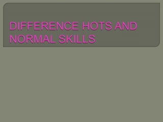1. HOTS (Higher Order Thinking Skills) is an education reform concept based on learning taxonomies that focuses on more sophisticated thinking skills.