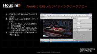 Effects Software Inc. 2014 All Rights Reserved. Alembicを使った ライティングワークフロー 2014/4/30 Side Effects Software Inc.