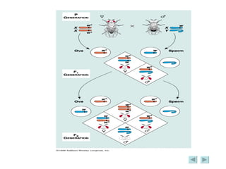 2) Linked genes on the same chromosome are inherited together and do not follow Mendel's laws of independent assortment unless separated by crossing over. This is demonstrated using examples in fruit flies.