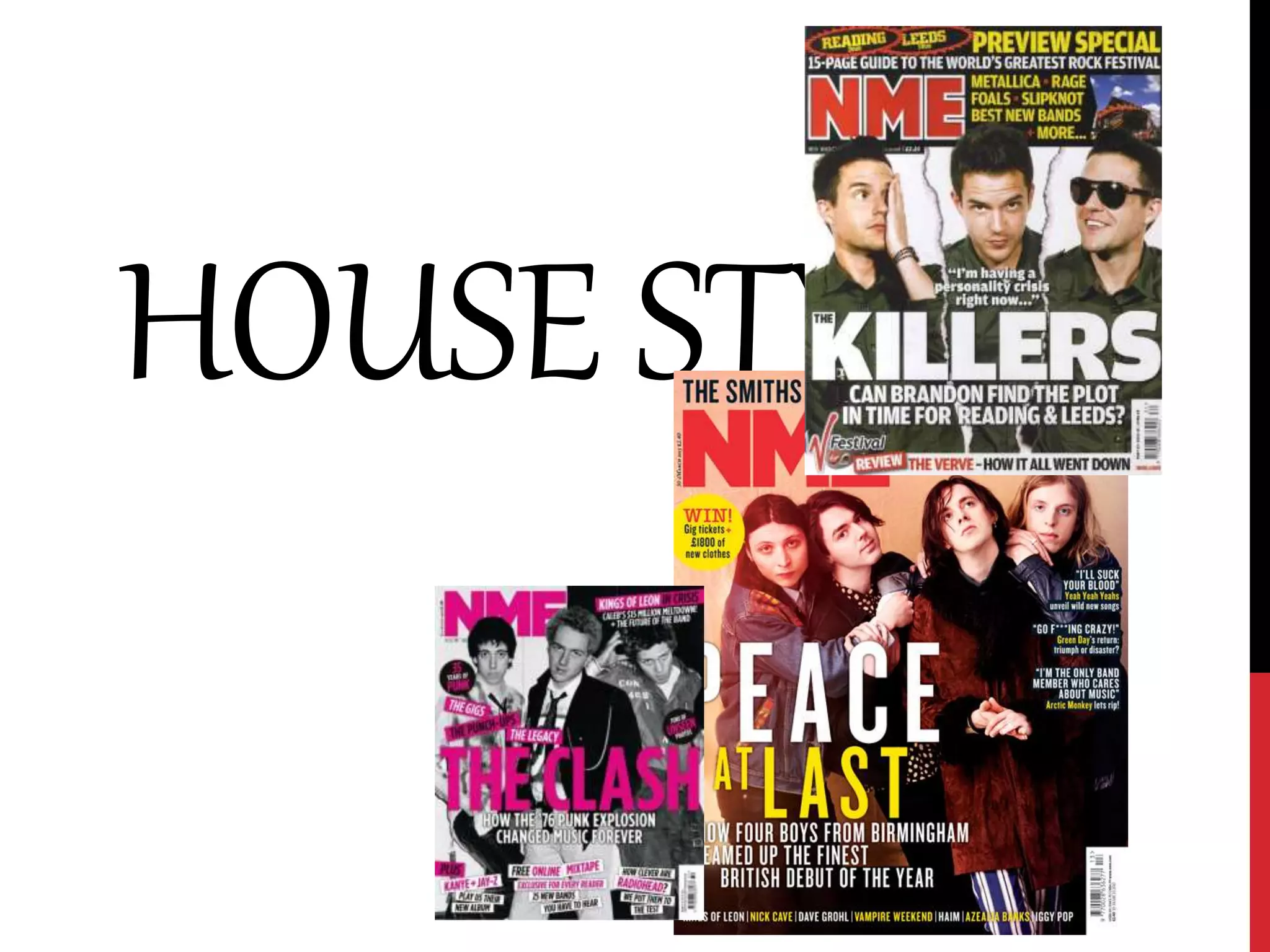 The document discusses house style, which refers to the consistent visual elements like layout, fonts, colors, and positioning of logos that give a magazine its recognizable and individual look. A house style allows readers to easily identify a magazine and helps them become familiar with its style. While magazines make slight alterations to their house style over issues to keep designs fresh, the style remains similar enough for readers to recognize the original magazine. The document provides examples of consistent elements in the house styles of magazines like NME, such as its logo design and placement of cover lines. It also notes that establishing a house style is important for effectively selling a magazine, like the author's proposed magazine "Reflektor."