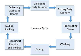 The housekeeping department is responsible for cleaning rooms and public areas, bed making, linen management, laundry services, pest control, key control, safety and security, interior decoration, and room maintenance. These functions ensure overall cleanliness and an ambiance that promotes a congenial environment for guests. Good housekeeping is important for guest satisfaction, health and safety, staff productivity, and the hotel's financial success.