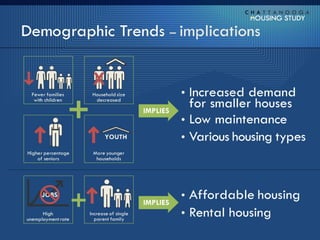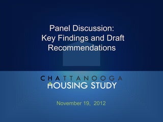The document summarizes findings from a panel discussion on a city housing study. It presented information on housing trends, the local housing market, gaps identified, and draft recommendations. The recommendations focused on developing strategies for suburban, urban, and affordable housing. Specific ideas proposed modifying codes to allow accessory units, identifying areas for higher density near activity centers, and developing review processes for infill development. The panel then discussed challenges and opportunities for the different strategies.
