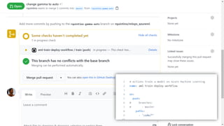 The document introduces MLOps (Machine Learning Operations) and the need to operationalize machine learning models beyond just model deployment. It discusses challenges like data and model drift, retraining models, software dependencies, monitoring models in production, and the need for automation, testing, and reproducibility across the full machine learning lifecycle from data to deployment. An example MLOps workflow is shown using GitHub and Azure ML to enable experiment tracking, automation, and continuous integration and delivery of models.