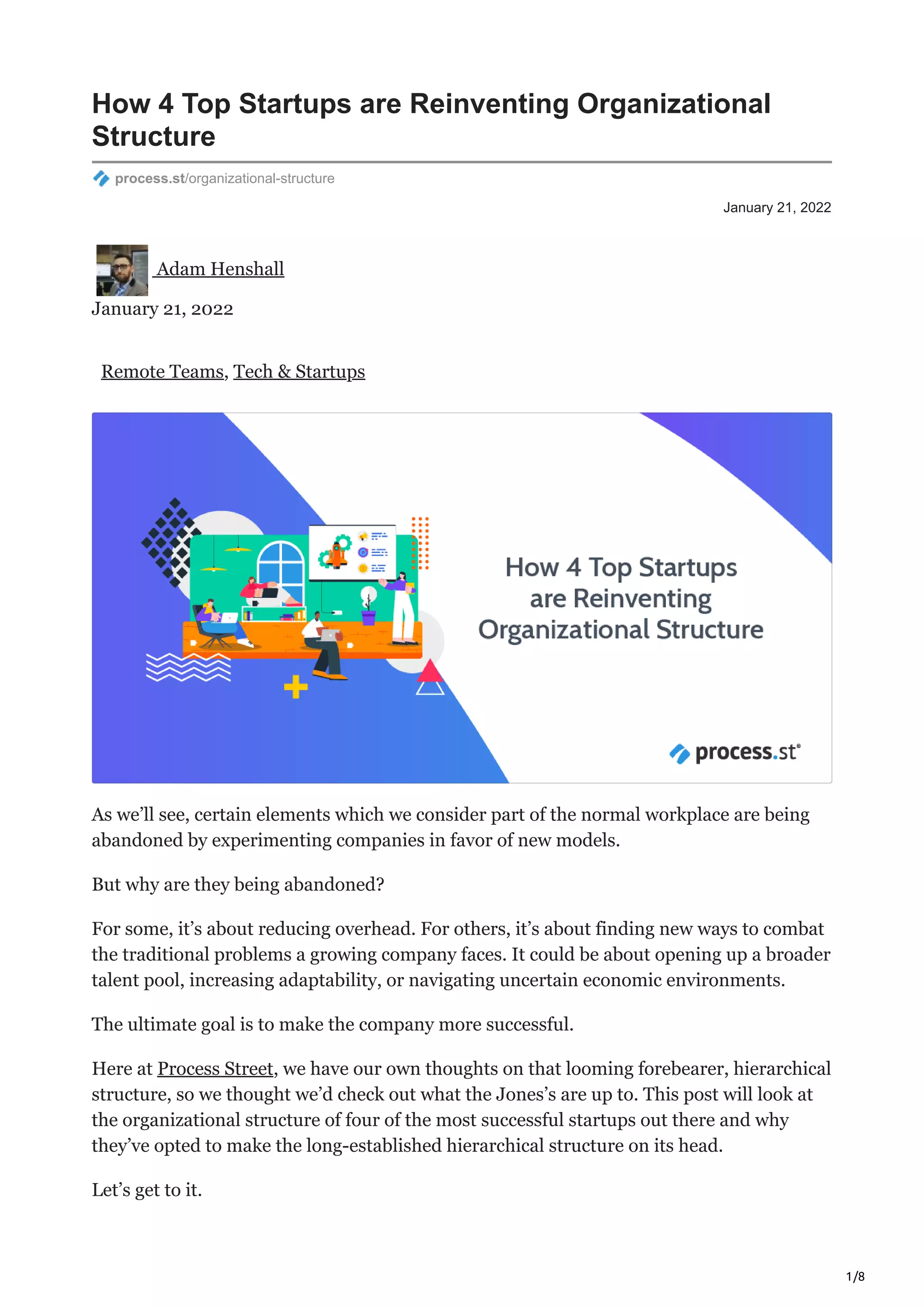 Overall the document advocates for flexibility and transparency over rigid hierarchy for startups.
