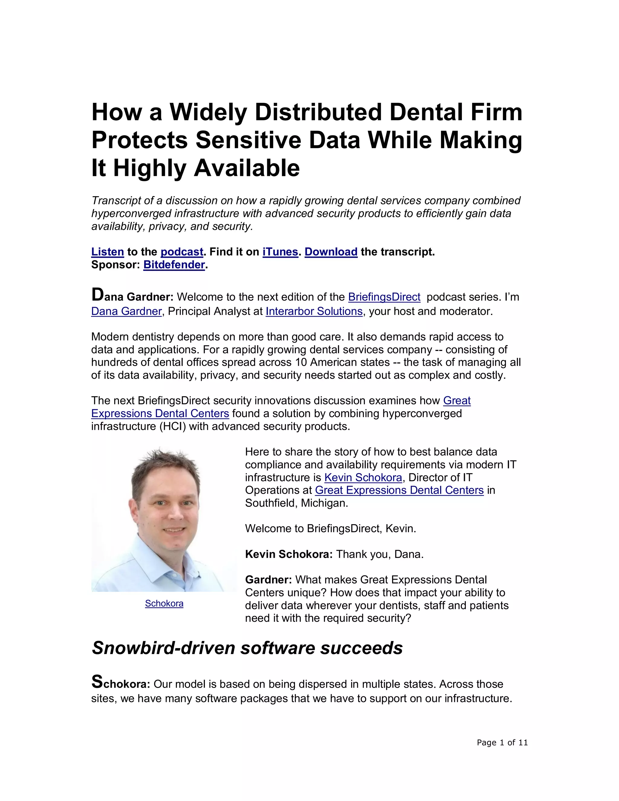 Great Expressions Dental Centers modernized its IT infrastructure by integrating hyperconverged infrastructure (HCI) with advanced security solutions to enhance data availability, privacy, and compliance, particularly in adherence to HIPAA and PCI requirements. This transition facilitated rapid growth across 275 locations, allowing efficient patient record management and a significant reduction in incident response time by 66%. The successful migration, completed ahead of schedule with minimal disruption, underscores the value of partnering with vendors like Nutanix and Bitdefender for improved operational efficiency.