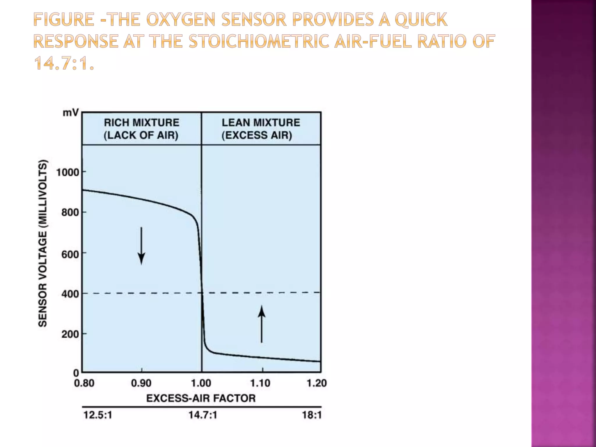 Voltage changes (0.1V for lean and 0.9V for rich mixture) inform the ECU to adjust air/fuel mixture for optimal performance.