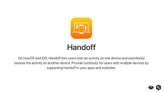 This document discusses how app indexing works to connect mobile apps to search engine results. It explains that app indexing allows mobile apps to be indexed and accessible via Google Search. It provides steps on implementing app indexing for iOS using Xcode and Firebase indexing, as well as for Android using Android Studio, Firebase, and Android App Links. The document emphasizes structuring app links to match website URLs and adding entitlements and files to connect apps to websites to enable app indexing.
