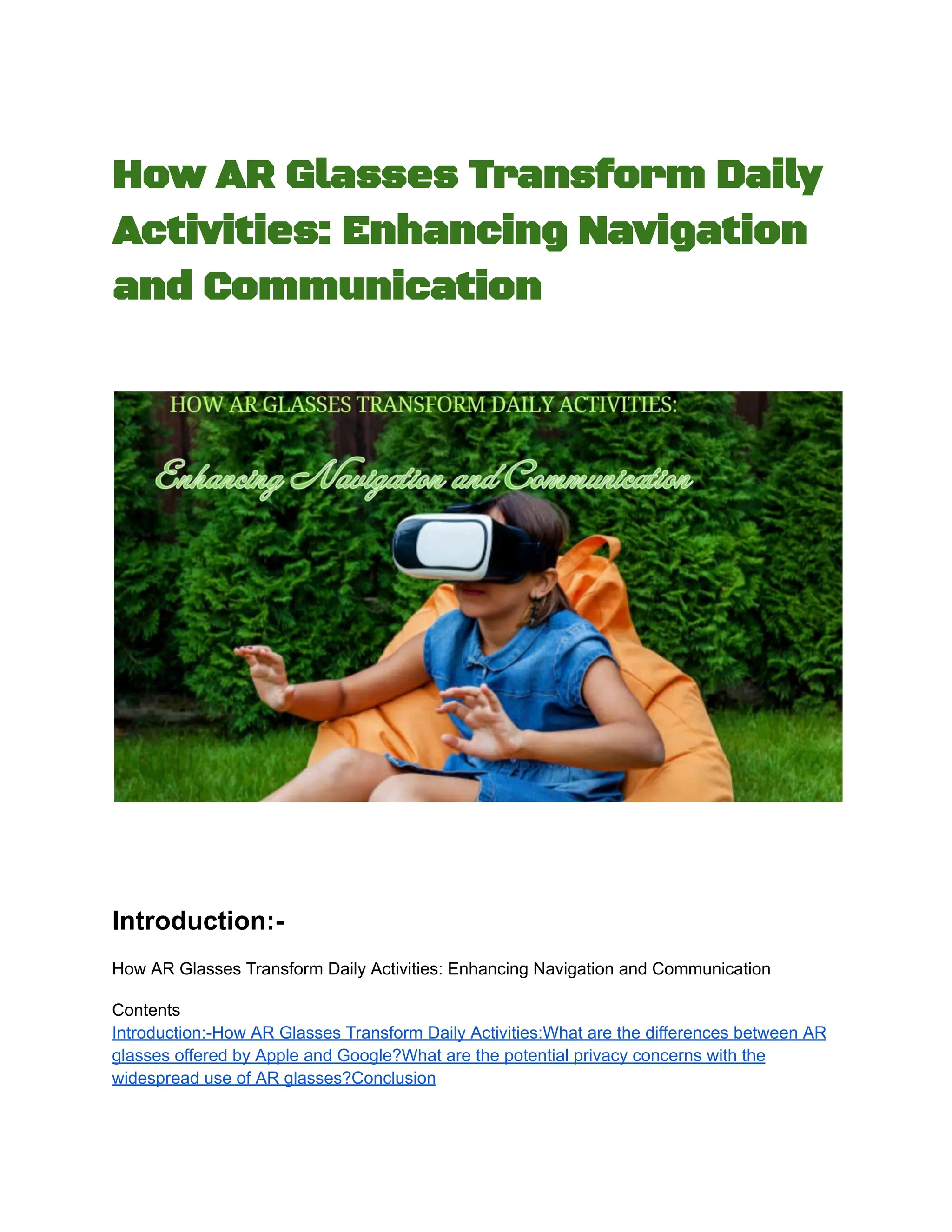 Augmented reality (AR) glasses are revolutionizing daily activities by enhancing navigation through real-time directions and landmark identification, and improving communication with features like hands-free calling and real-time translation. A comparison between AR glasses from Apple and Google highlights differences in design, functionality, and target audiences, with Apple focusing on consumer applications and Google primarily targeting enterprise use. Privacy concerns regarding continuous recording, facial recognition, and data security persist, necessitating robust policies and user controls to address these issues while leveraging the benefits of AR technology.