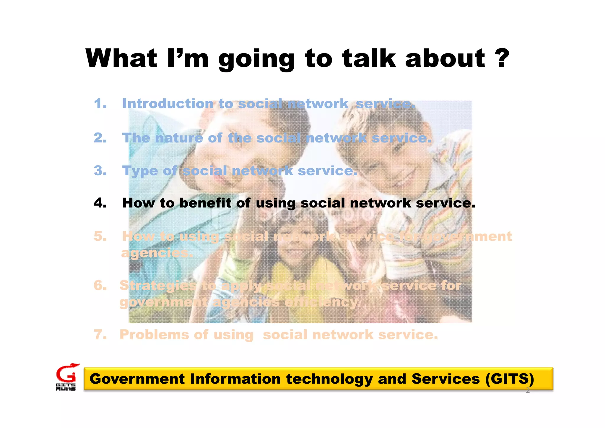 The document discusses how government agencies can benefit from using social network services. It outlines that social networks provide a low-cost channel for governments to communicate with citizens and employers. They can also be used as a tool to monitor consumers and gain insights into consumer behavior without costs. Additionally, social networks allow governments to develop customer relationship management strategies and improve products/services based on customer satisfaction, brand value, experiences, and engagement. Finally, the document provides examples of how preparation of social media activities can help governments achieve communication objectives.