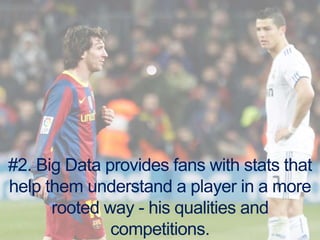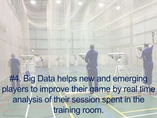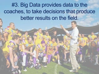 Big data is transforming sports by enabling the collection and analysis of player and fan actions through strategically placed cameras. This data aids decision-making regarding viewership trends and optimal broadcasting strategies. Additionally, new sports startups benefit from insights provided by big data for better operational decisions.
