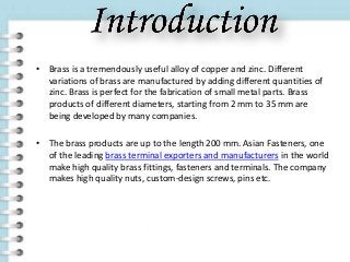 • The brass products are up to the length 200 mm. Asian Fasteners, one
