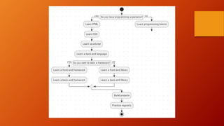 This document discusses the key components of developing an ideal website, including front-end development with HTML, CSS, JavaScript, and frameworks like React and Angular. Back-end development involves server-side languages like Python, Ruby, and Java, as well as web frameworks and APIs. Databases are also discussed, including relational databases like MySQL and NoSQL databases like MongoDB. The document emphasizes that responsive design, databases, APIs, and frameworks are essential for enabling communication between the front-end and back-end.