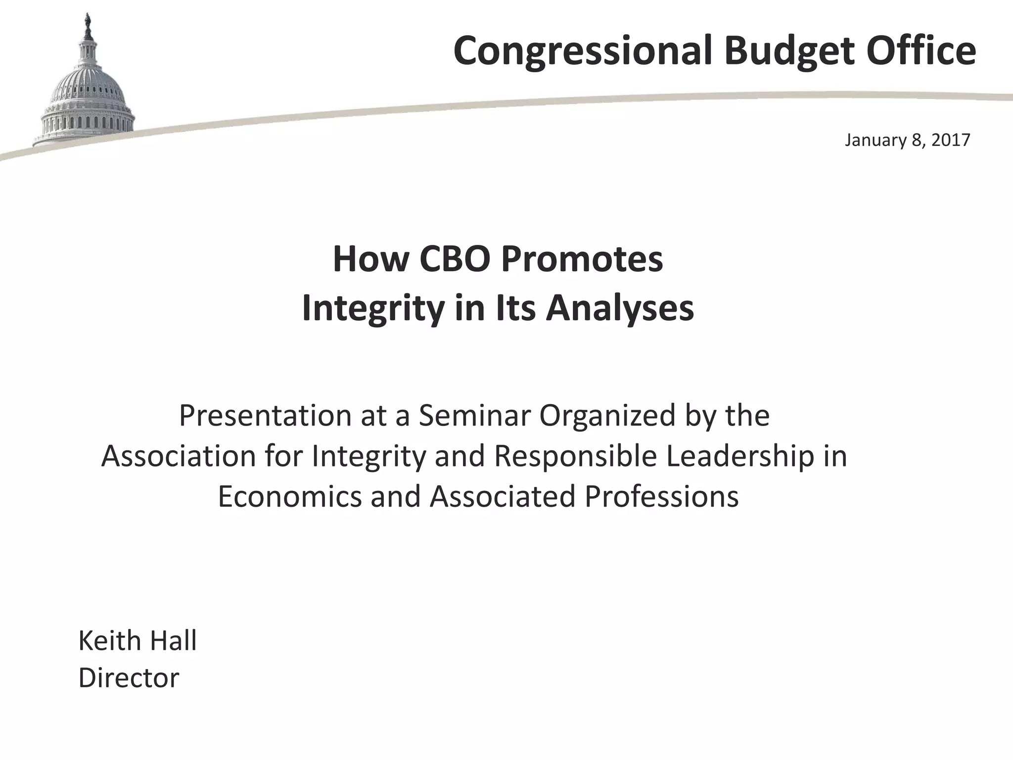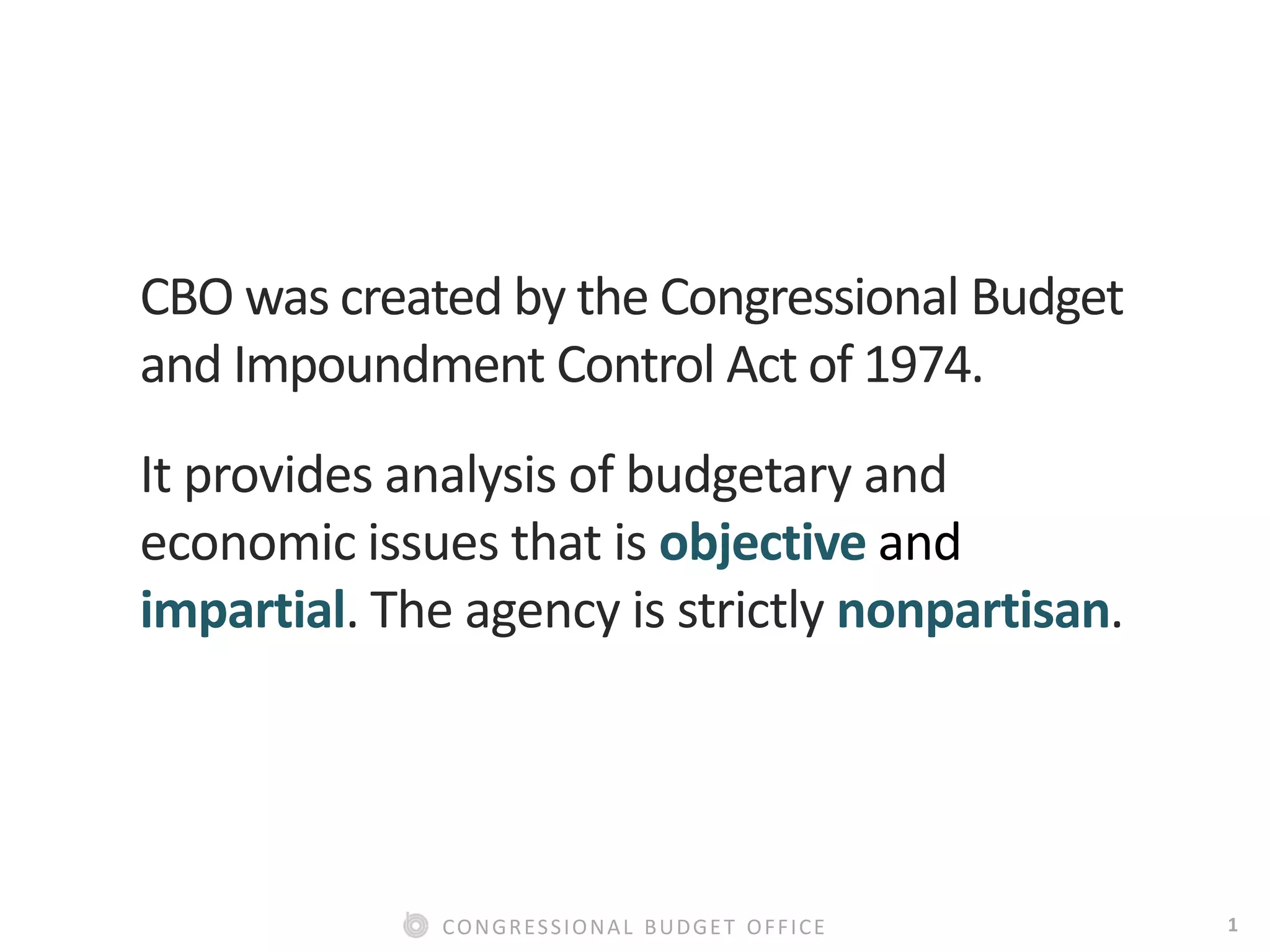 The Congressional Budget Office (CBO) is a nonpartisan agency that analyzes budgetary and economic issues to provide objective information without making policy recommendations. Its staff, primarily composed of highly educated professionals, produces various reports including budget projections, cost estimates of legislation, and analyses of federal programs. To maintain integrity and transparency, the CBO enforces strict rules against conflicts of interest, conducts rigorous internal reviews, and seeks feedback from outside experts.