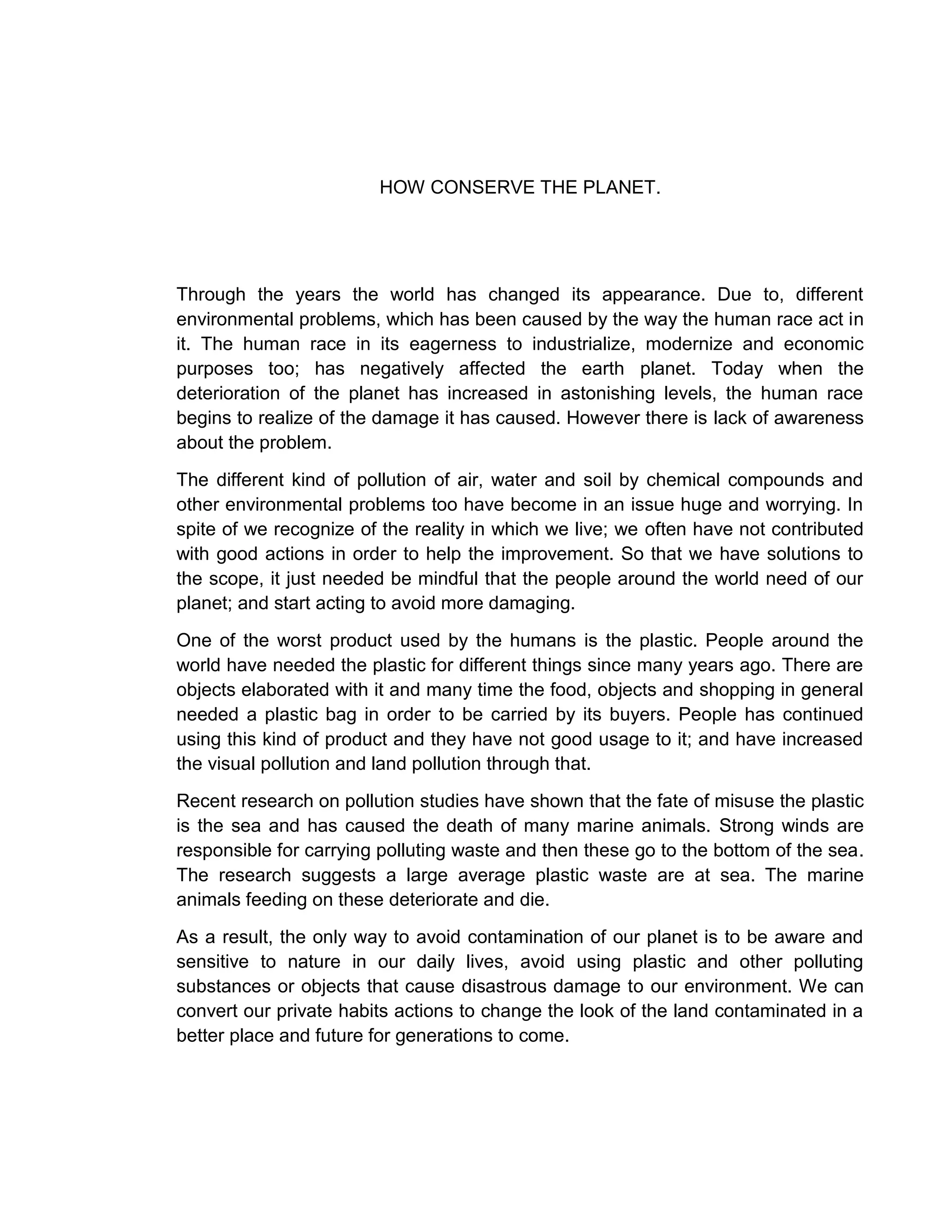Through industrialization and modernization, human activity has negatively impacted the environment. Various forms of pollution have increased to worrying levels, including air, water, and soil pollution from chemical compounds. While people are becoming more aware of the problems, there remains a lack of meaningful action to help improve the situation. One major issue is plastic use - people have relied on plastic for many products and packaging for years. However, plastic is not disposed of properly and increases land and visual pollution. Research also shows that plastic waste often ends up in the oceans, where it is ingested by marine animals, causing illness and death. To avoid further contamination, people must become more conscious of nature in their daily lives by reducing plastic use and other pollut