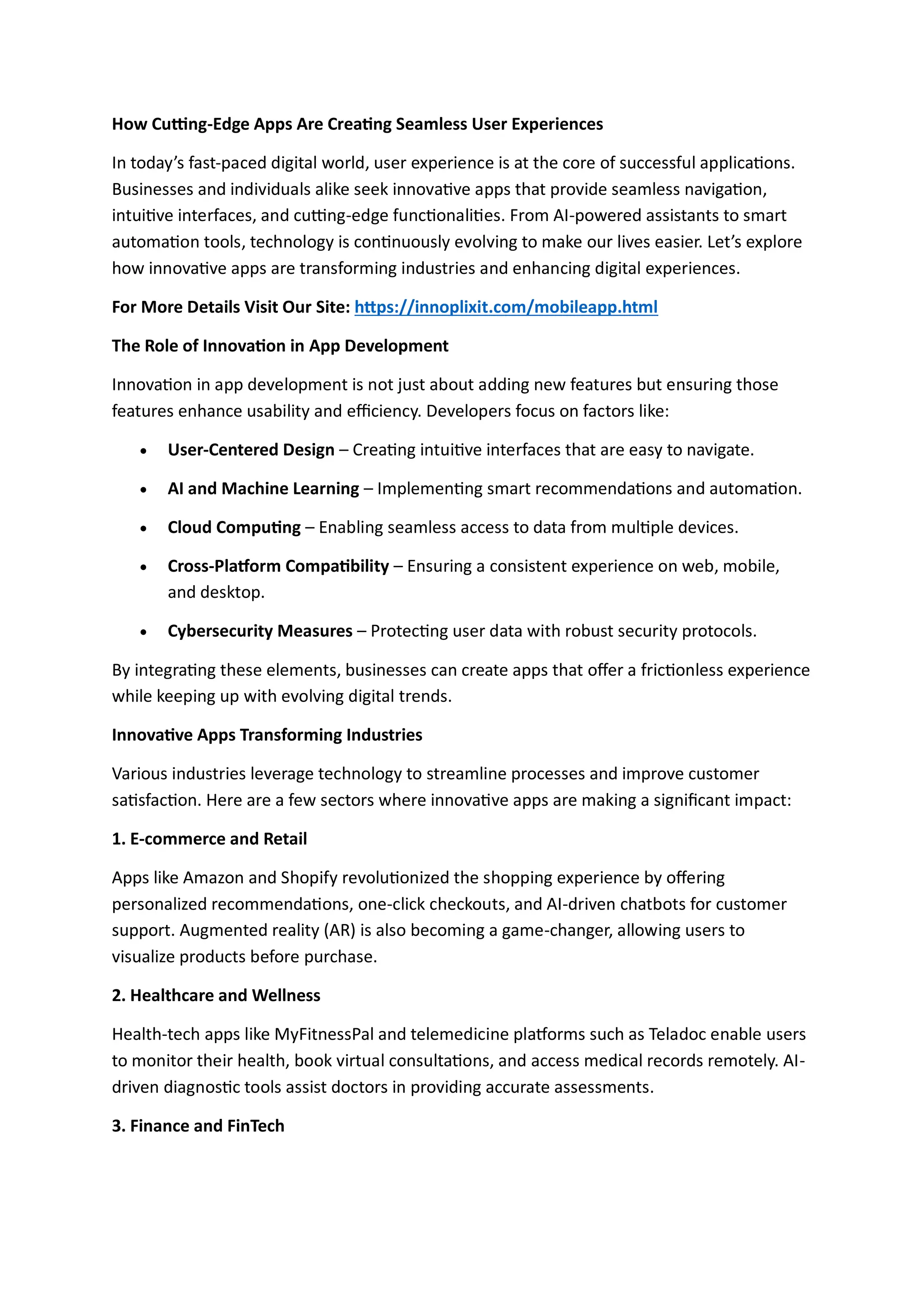 In today’s fast-paced digital world, user experience is at the core of successful applications. Businesses and individuals alike seek innovative apps that provide seamless navigation, intuitive interfaces, and cutting-edge functionalities. From AI-powered assistants to smart automation tools, technology is continuously evolving to make our lives easier. Let’s explore how innovative apps are transforming industries and enhancing digital experiences.
