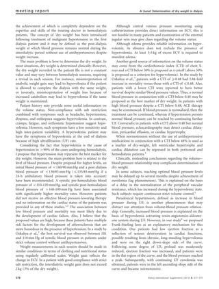 This document discusses the importance of determining 'dry weight' in dialysis patients to manage fluid and sodium retention, which can lead to hypertension and cardiovascular complications. It emphasizes that achieving normotension without antihypertensive medications and a cardio-thoracic index below 48% are key indicators of reaching dry weight. The paper also critiques various methods for determining dry weight, advocating for a clinical approach that is simpler and cost-effective.