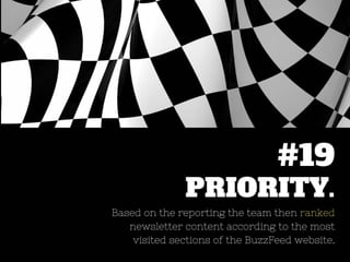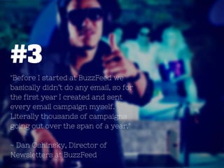 BuzzFeed successfully revamped their email newsletters for mobile users, significantly increasing mobile access to over 80%. Email has become a key traffic source, with over a million subscribers gained in 2014 and expectations for higher numbers in 2015. Prioritizing user experience and excellence in content is crucial in newsletter strategy.