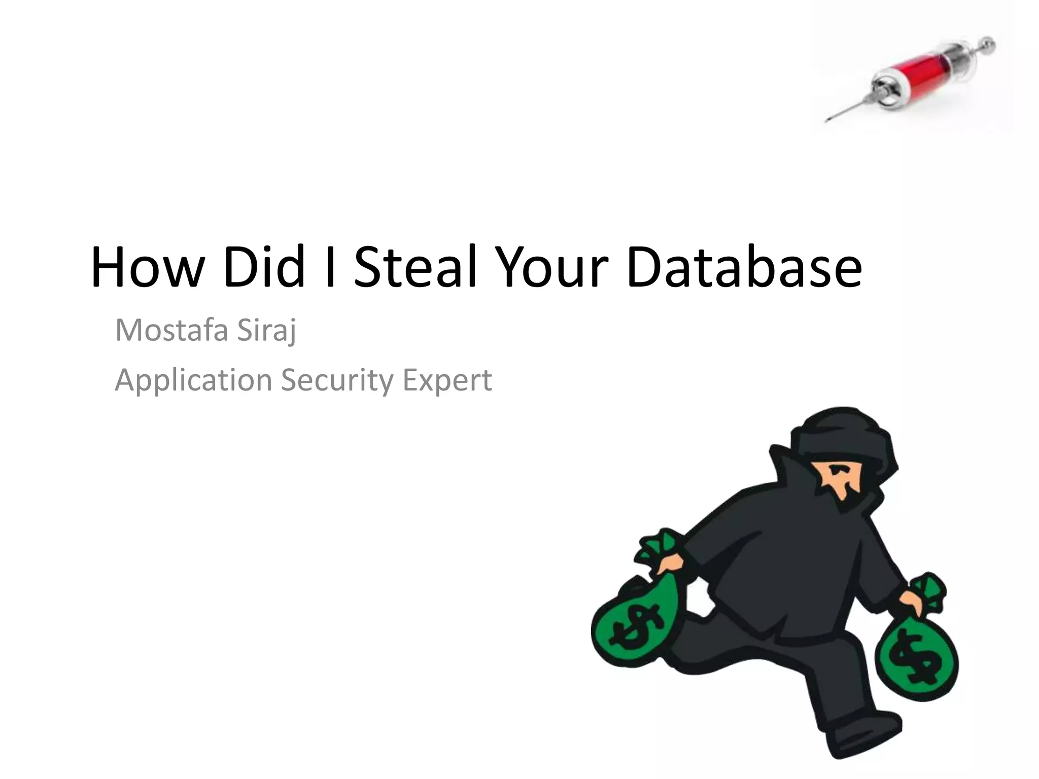 This document discusses how SQL injection attacks can be used to steal database information. It begins by providing background on databases and SQL queries. It then explains how SQL injection works by altering existing SQL commands. Several examples are given of SQL injection attacks, like exploiting unvalidated login forms. The document outlines a step-by-step strategy an attacker could use to extract metadata and data from a database using SQL injection, including getting the database type and table/column names. It concludes by demonstrating how an attacker could use the extracted information to add an administrative account.