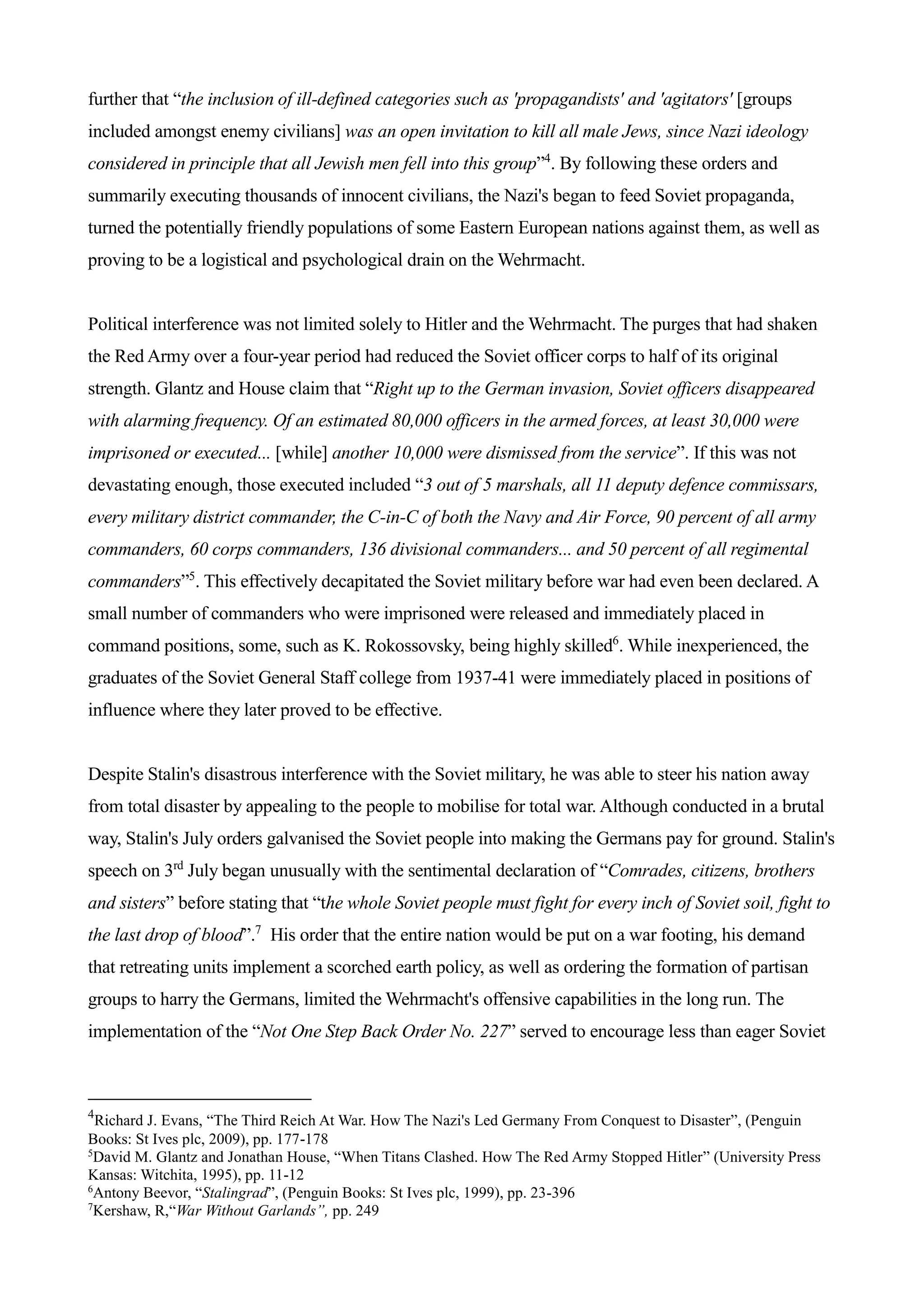 2) Stalin's purges had decimated the Red Army officer corps but survivors later proved effective commanders.