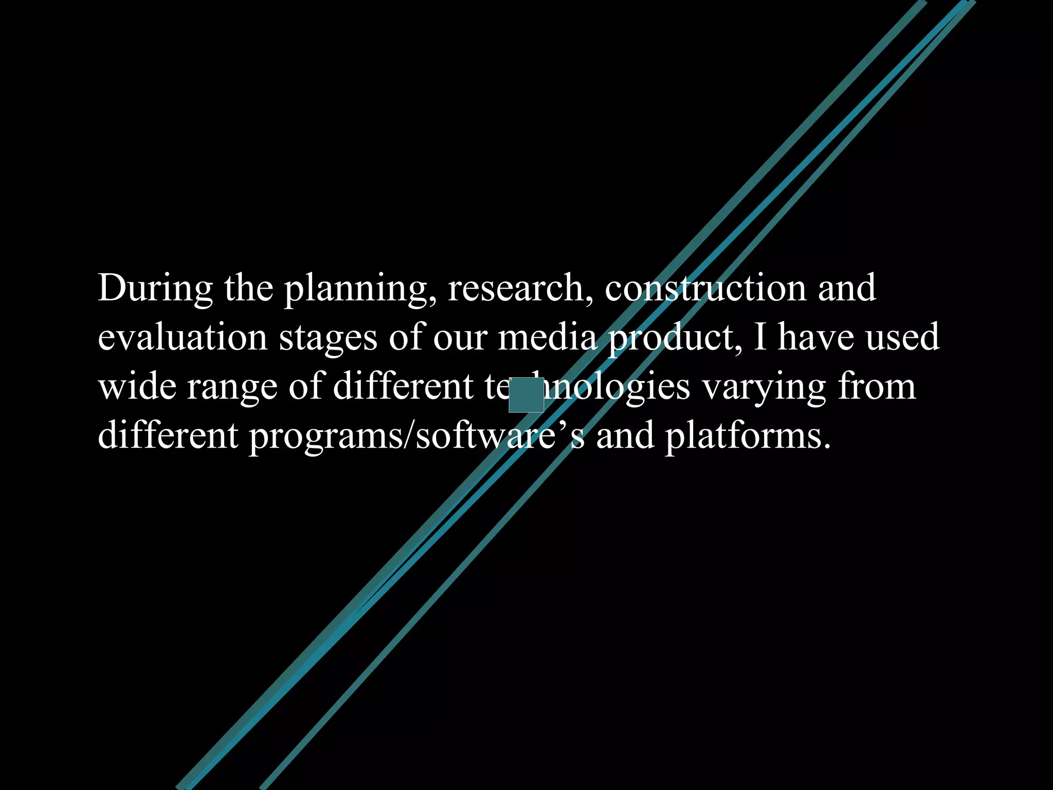 During the production of her media project, Salma Begum used a variety of technologies across different stages. In planning, she used Movie Maker to create storyboards and Flash to develop animations. Word was used for scriptwriting and phones and social media for communication. In research, she analyzed film classifications and institutions to inform her drama film. Survey Monkey collected audience feedback. Construction involved using iMovie, QuickTime, Final Cut and Flash for editing, and Photoshop for the poster. Logic Studio created the radio trailer. Evaluation included using the BBC and MP3 recordings to gather and apply feedback to improve the film in Final Cut.