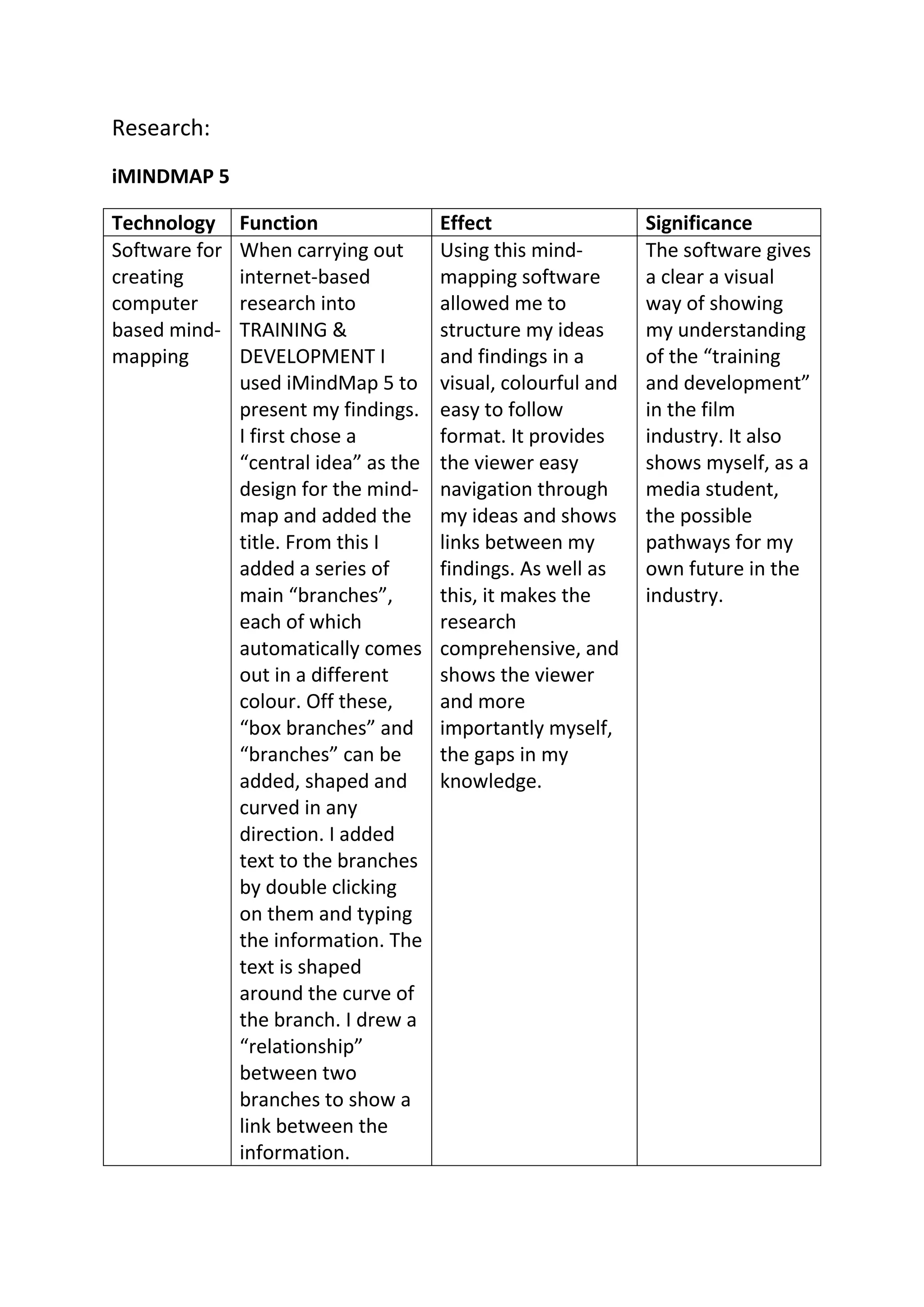The document summarizes the use of various technologies to support research, planning, construction, and evaluation activities for an advanced portfolio project. iMindMap was used to structure research findings visually. Prezi captured script drafts and analysis between versions. Blogger provided an online platform to present the portfolio professionally with customization. Slideshare hosted an evaluation presentation for embedding in the Blogger blog. These technologies facilitated organization, presentation, and sharing of the portfolio work.