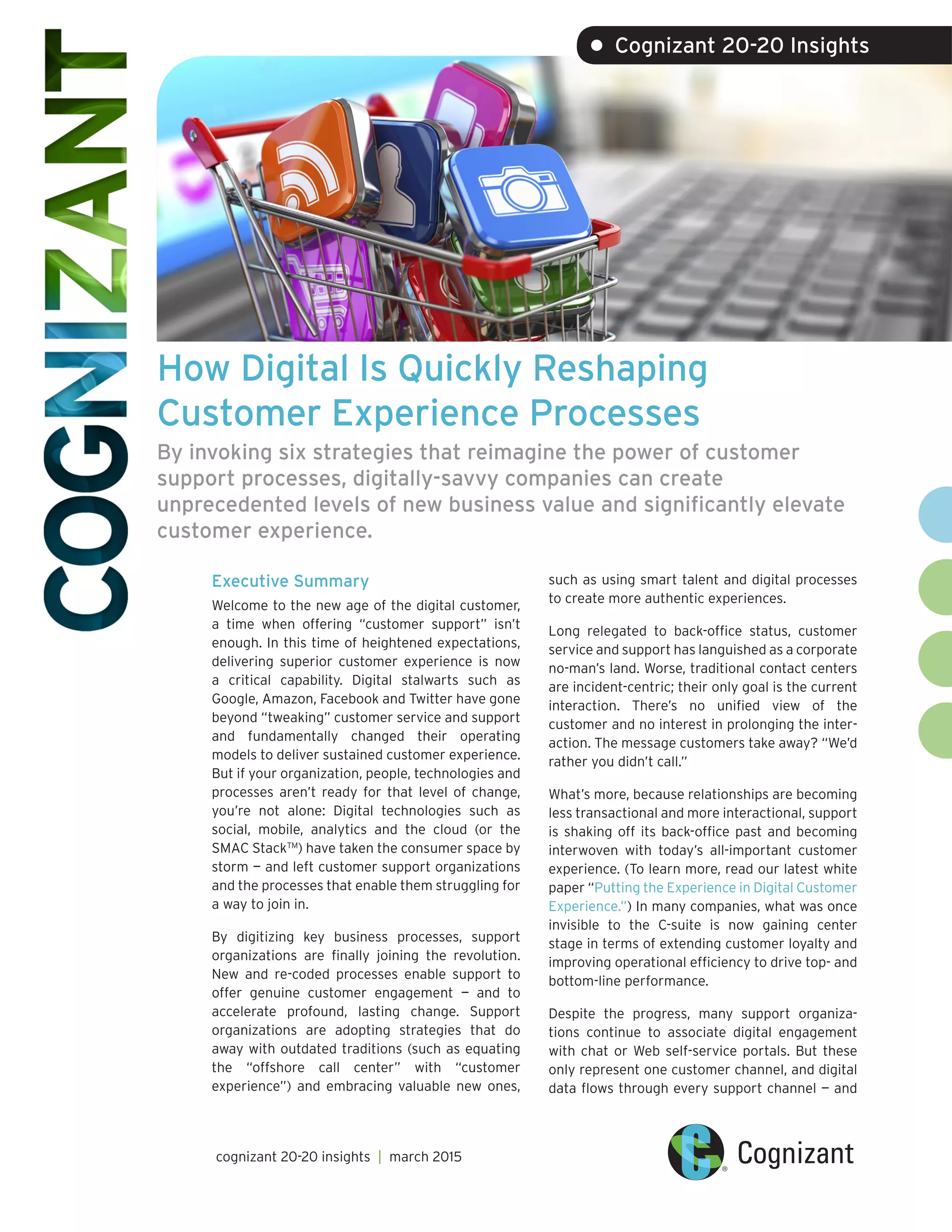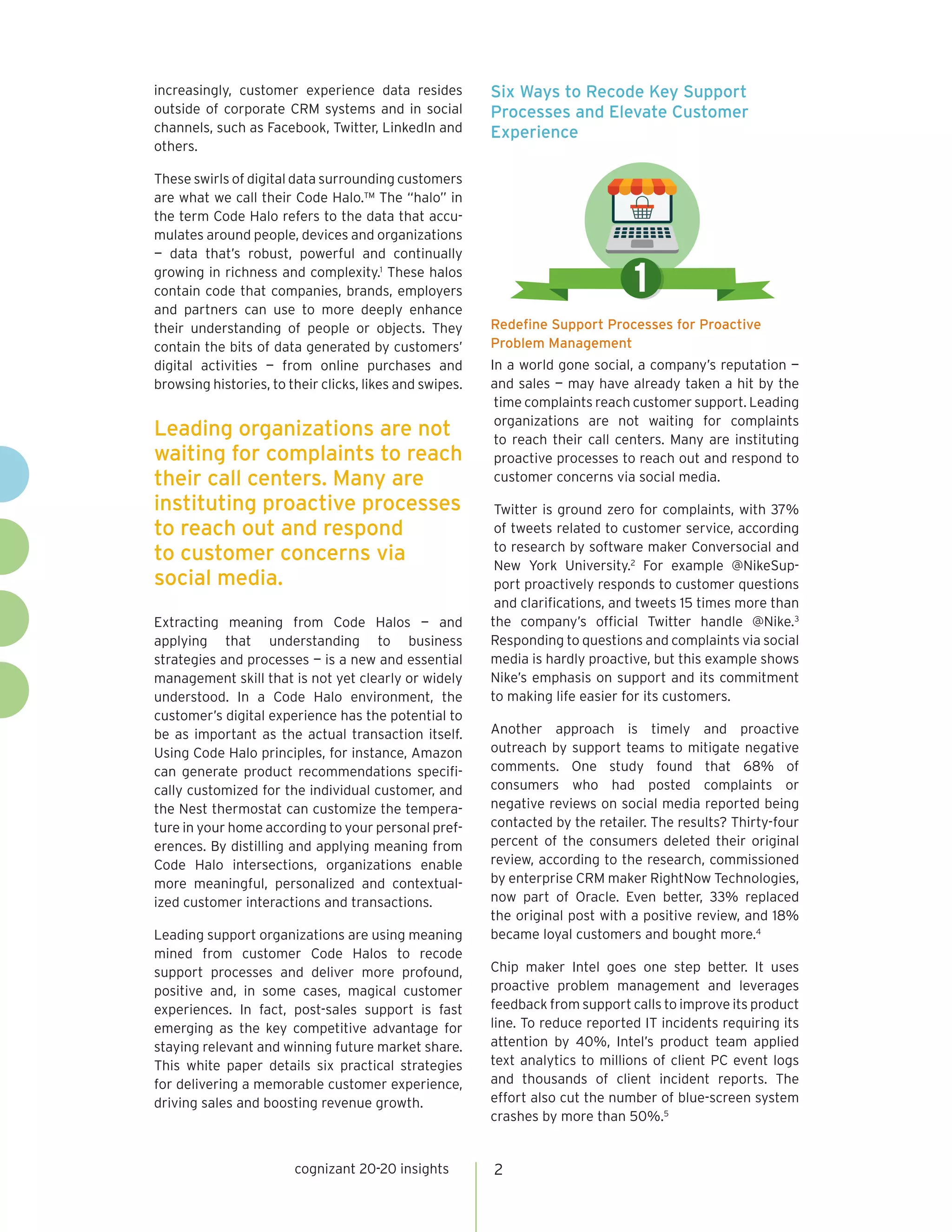 The document explores how digital transformation is reshaping customer support processes, emphasizing that companies must adopt new strategies to meet heightened customer expectations and create meaningful engagement. It introduces the concept of 'code halos'—the aggregate digital data surrounding customers—and discusses the importance of leveraging this information to personalize customer interactions and drive business value. The document outlines six strategies for improving customer experiences, highlighting the need for proactive problem management, seamless multichannel integration, personalized support, and the creation of memorable customer moments.