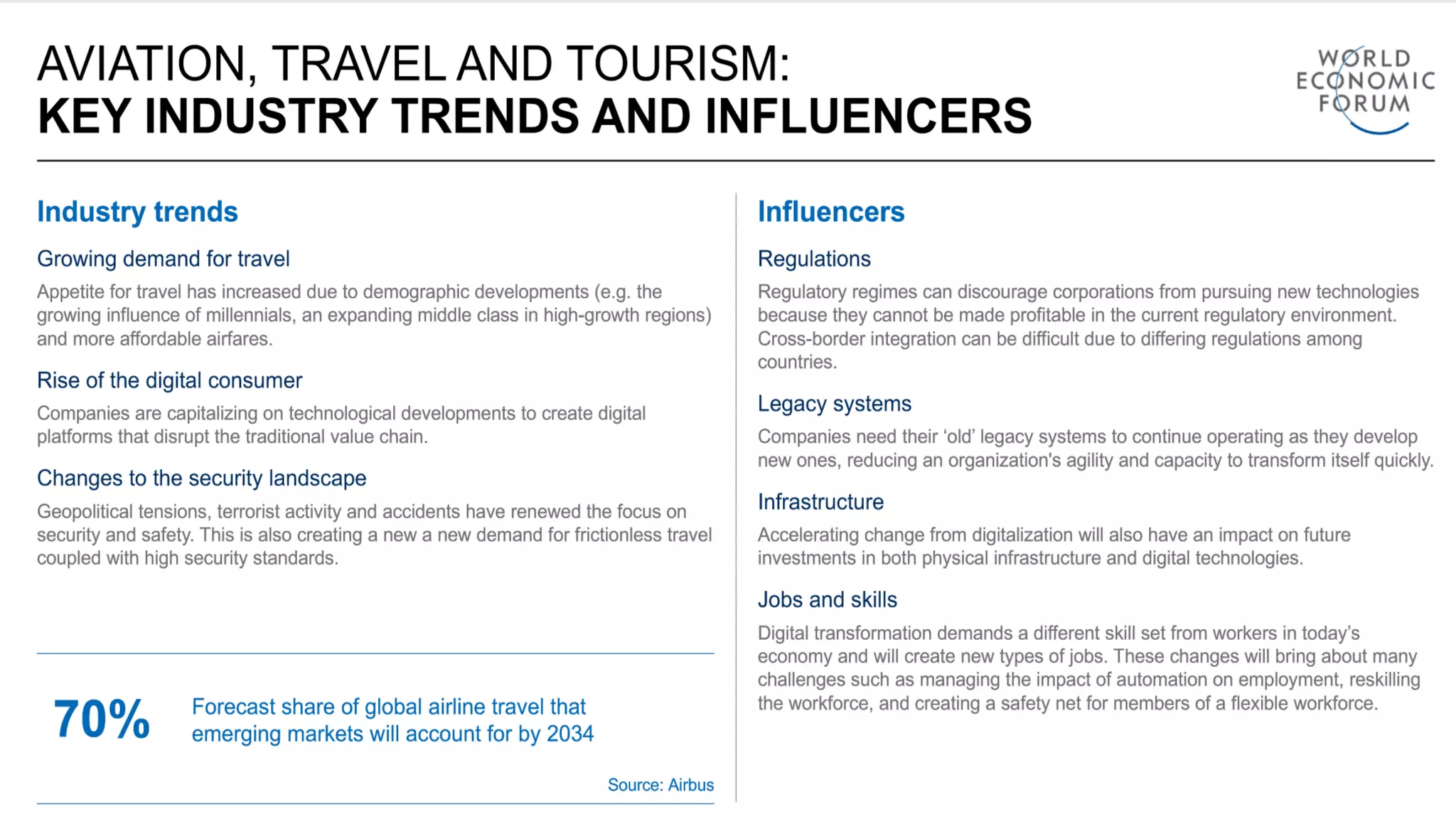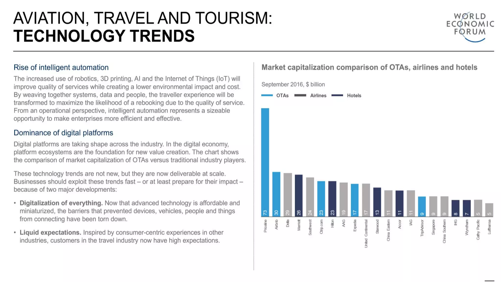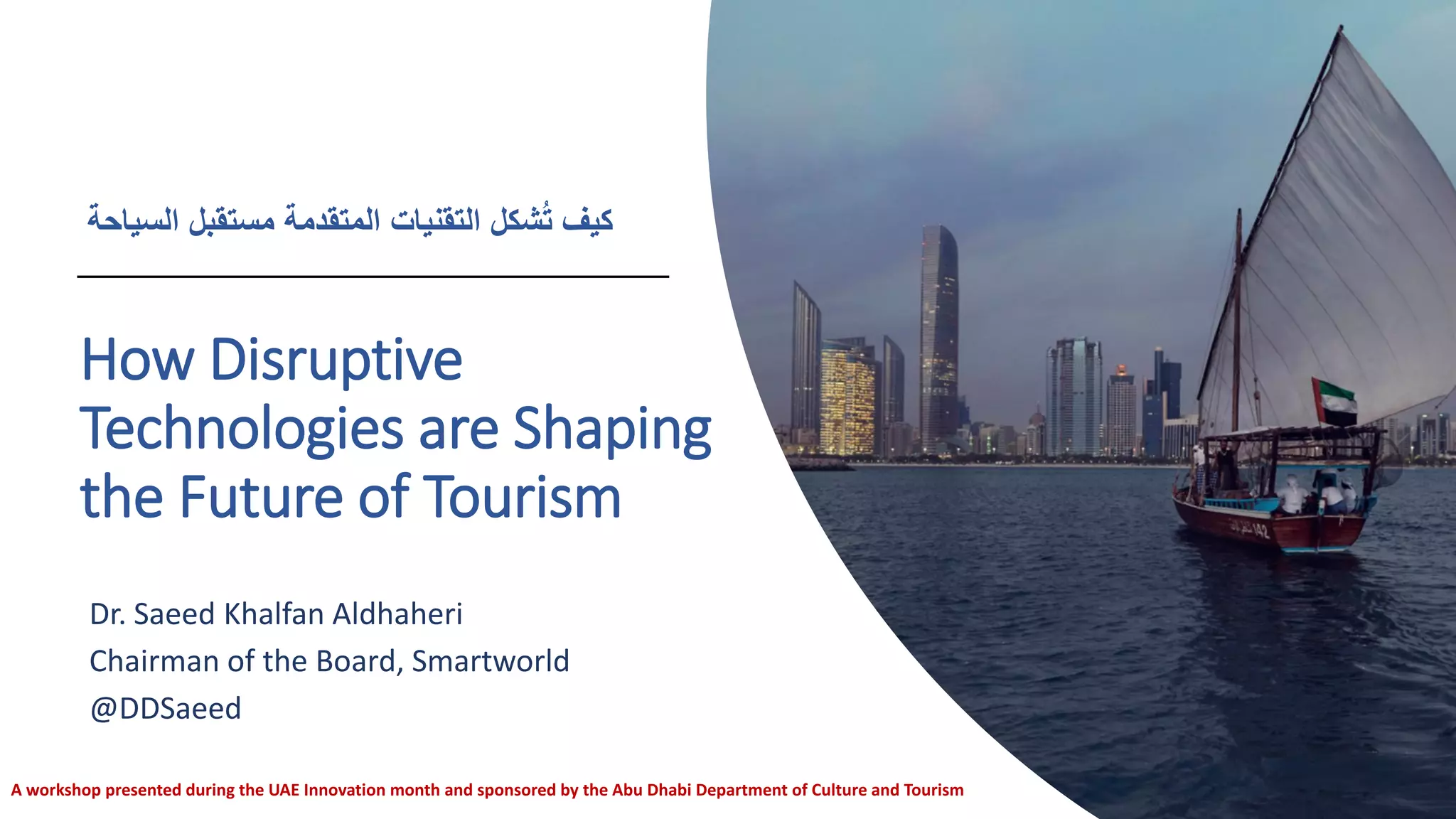 The document discusses how disruptive technologies such as AI, IoT, and blockchain are shaping the future of the travel and tourism industry. It highlights the rise of digital innovations that enhance customer experiences through seamless travel, personalization, and automation, while also addressing the challenges and benefits associated with these technologies. Additionally, it emphasizes the economic potential and societal benefits that the digital transformation can bring to the industry in the coming years.