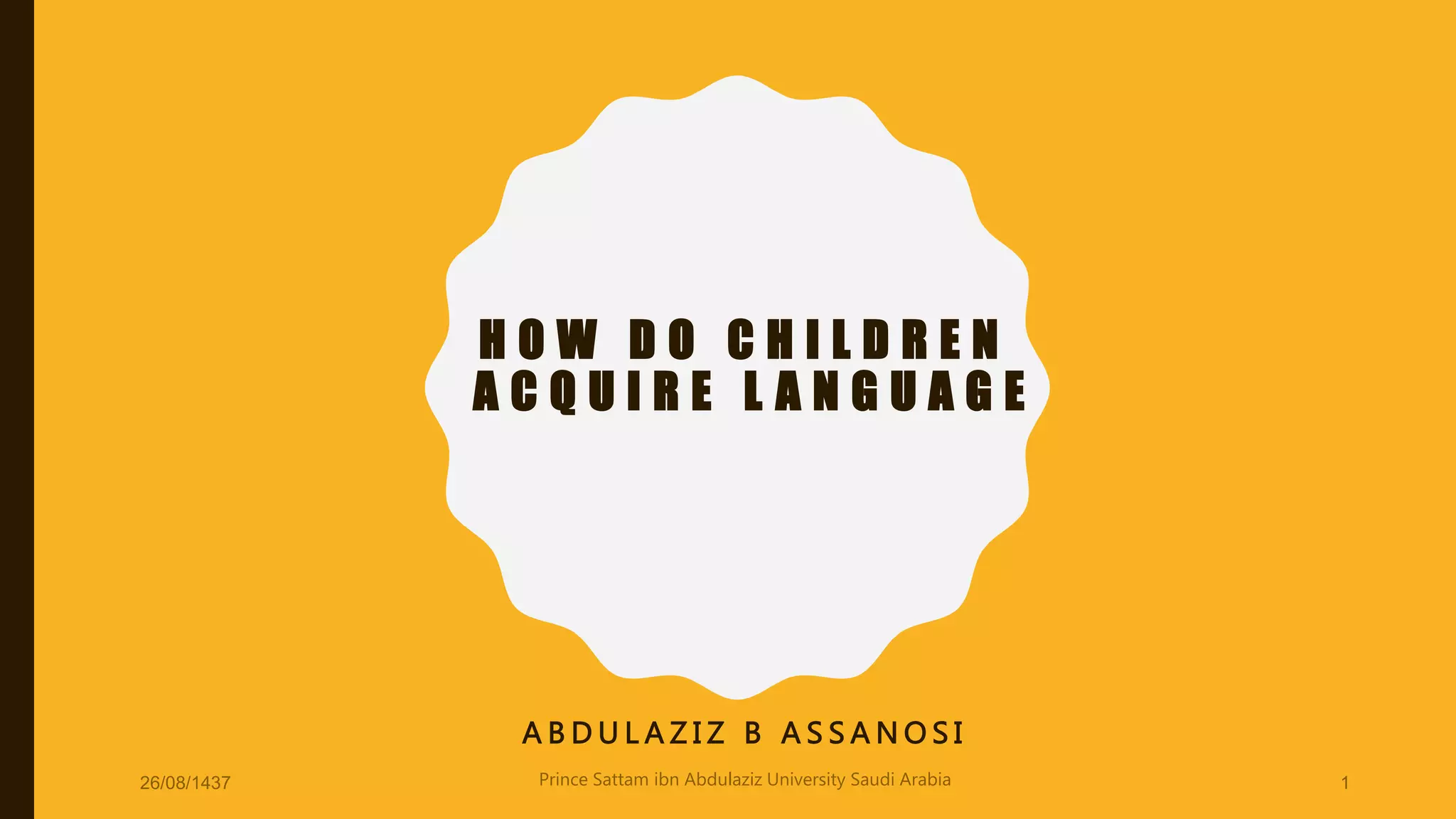 The document discusses the processes through which children acquire language, distinguishing between speech production and comprehension. It outlines the stages of speech development, including vocalization, babbling, and the transition to speech, as well as subsequent stages like holophrastic and telegraphic speech. Additionally, it explores the factors influencing the acquisition of speech sounds and the order in which children learn morphemes.