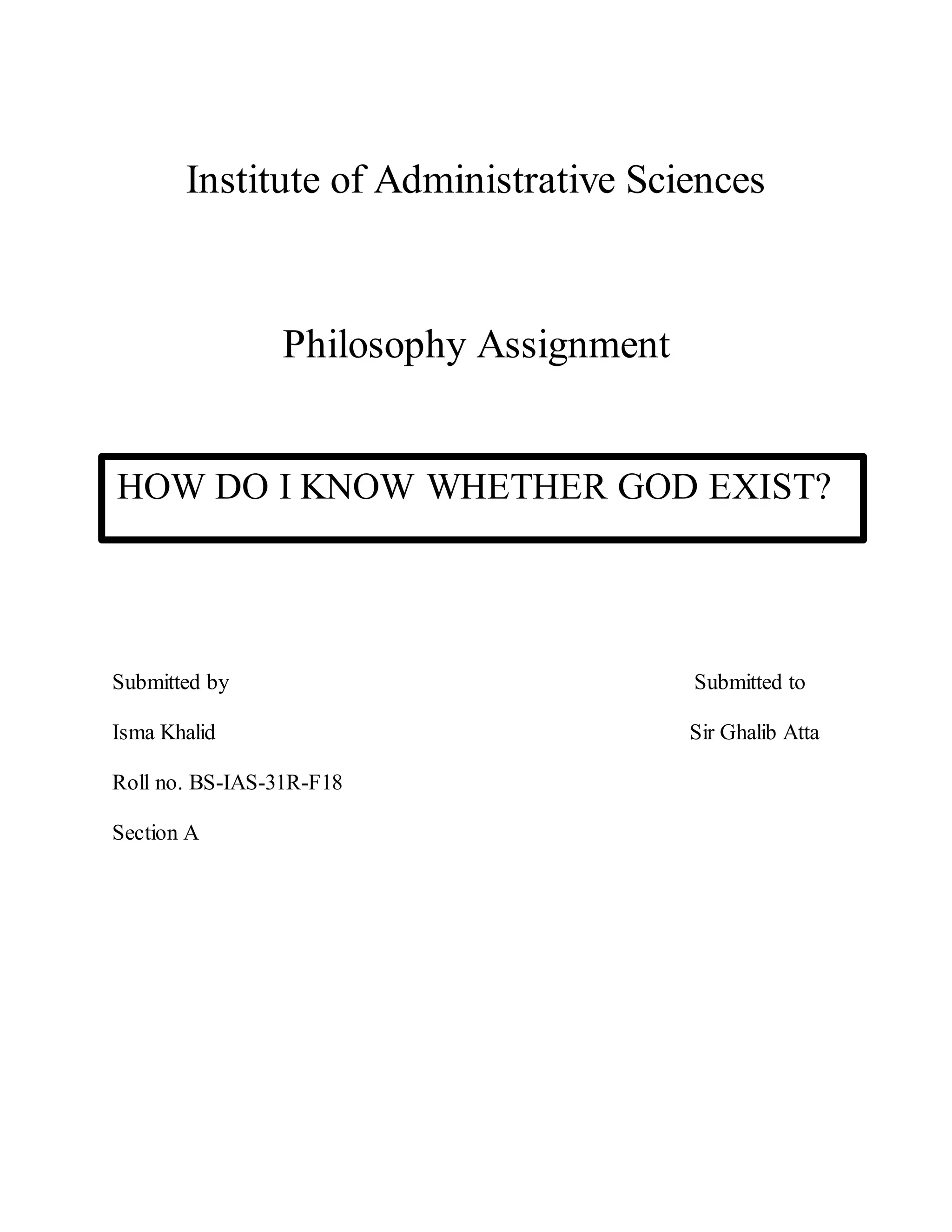 The document discusses arguments for the existence of God from a philosophical perspective. It examines the teleological, ontological, and cosmological arguments put forth by thinkers like Paley, Anselm, and Aquinas. While each argument provides a logical case, they also have limitations and do not prove God's existence with certainty. The author believes logic and phenomena like the origin of the universe, life, and encoded information in DNA point to an intelligent creator. As a Muslim, the author finds the religious conception of an all-powerful, all-knowing, omnipresent, and absolute God who exists outside of time and space to be consistent with this logical perspective.
