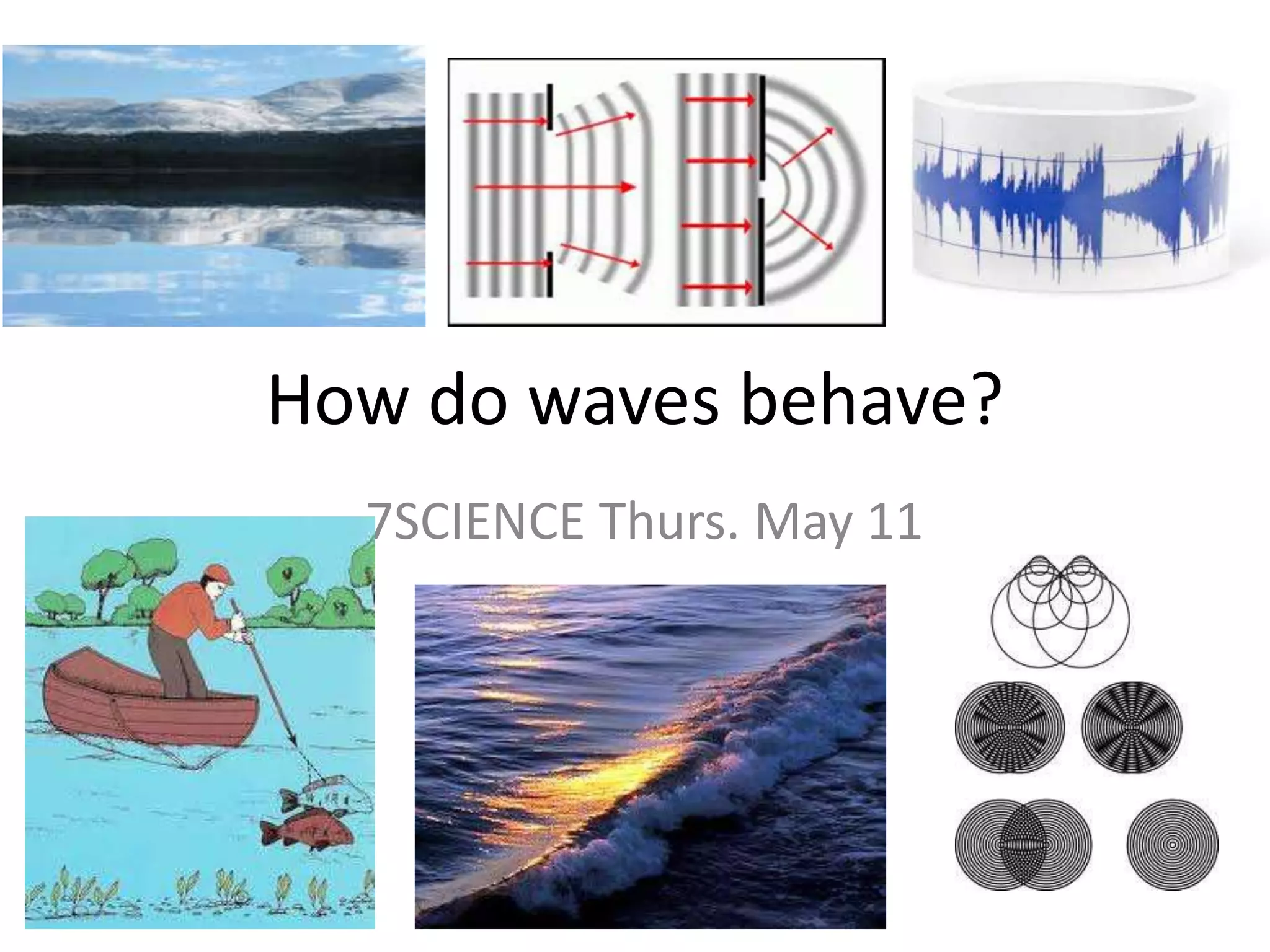 Waves can behave in several ways as they interact with objects and each other. They can reflect off surfaces, refract as they pass between different materials by changing speed and direction, diffract by bending around barriers, and interfere by combining with other waves to form a new wave. Reflection causes echoes, refraction makes underwater objects appear closer, diffraction allows sound to travel around corners, and interference is used in technologies like CDs and ear plugs.
