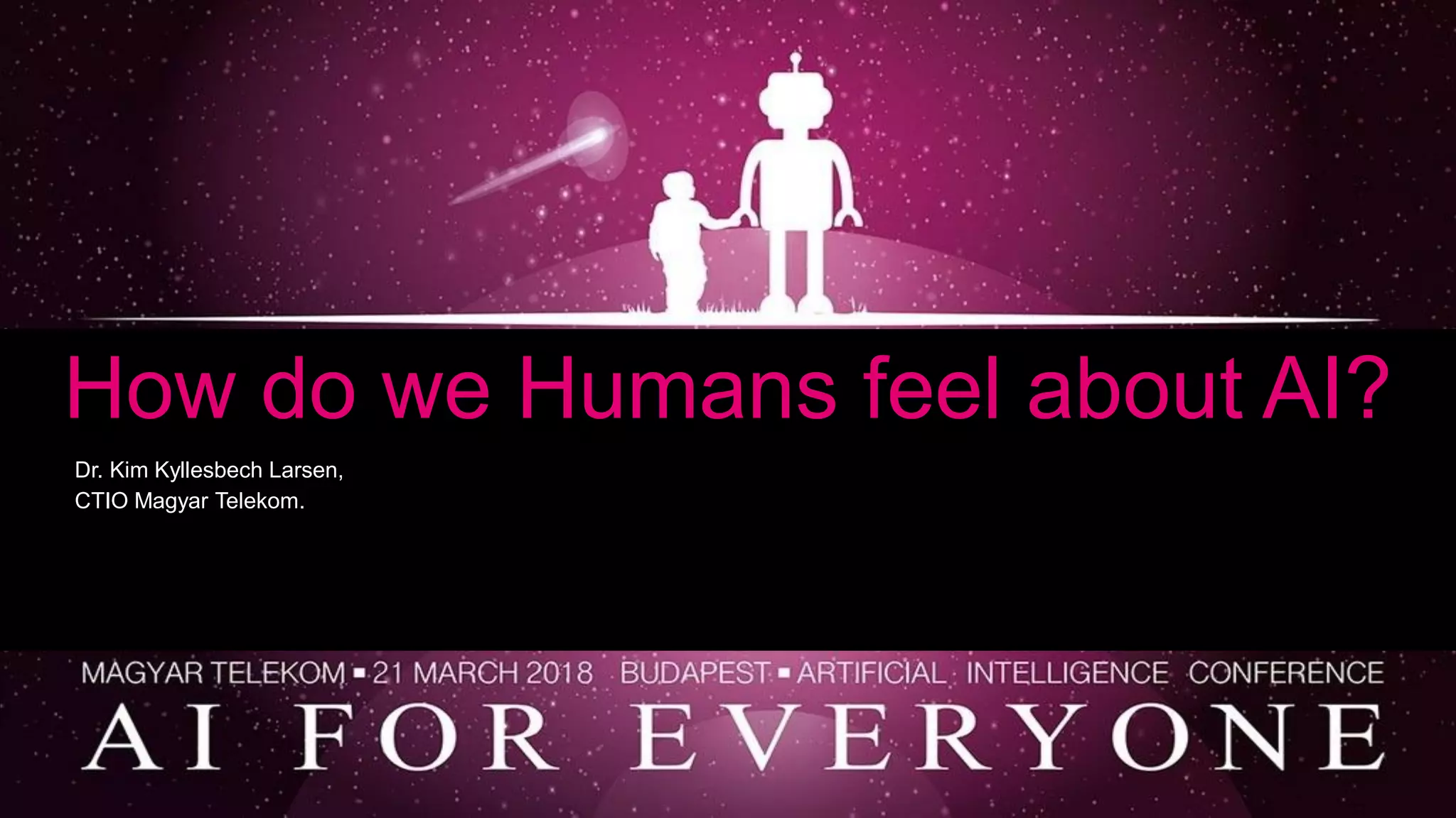 Dr. Kim K. Larsen explores human sentiments towards artificial intelligence through various surveys, indicating that a significant portion of the population fears job replacement by AI and expresses skepticism towards AI's role in corporate decision-making. Men show more optimism about AI compared to women, especially those with children, while most decision-makers rely on their intuition over AI recommendations. Overall, trust in AI remains low, with many believing humans to be more objective than AI.