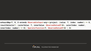 FRP is a reactive programming paradigm that uses functional programming building blocks. It models UI components as streams/observables and uses pure functions as operators to process and propagate change between these streams. State is represented using subjects that emit new stream values in response to events rather than mutable variables. Higher order operators like map and switchMap allow streams of streams to be processed, with switchMap useful for modeling asynchronous operations like HTTP requests. The learning curve for FRP takes effort but pays off in declarative, reactive programs.