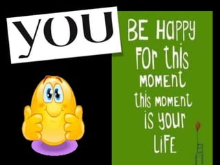 The document discusses living in the present moment as that is the only time we truly experience life, as worrying about the past through regret or about the future does not change either and provides no benefit.
