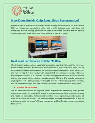 Here, we discuss about How Does the M4 Chip Boost iMac Performance. If you want iMacs Rentals in Dubai from Techno Edge Systems LLC, they provide best iMacs for lease with fast delivery across UAE. for small & medium-sized businesses in Dubai. They providing top-tier technology for your business and personal needs. For more info call us on +971-54-4653108.