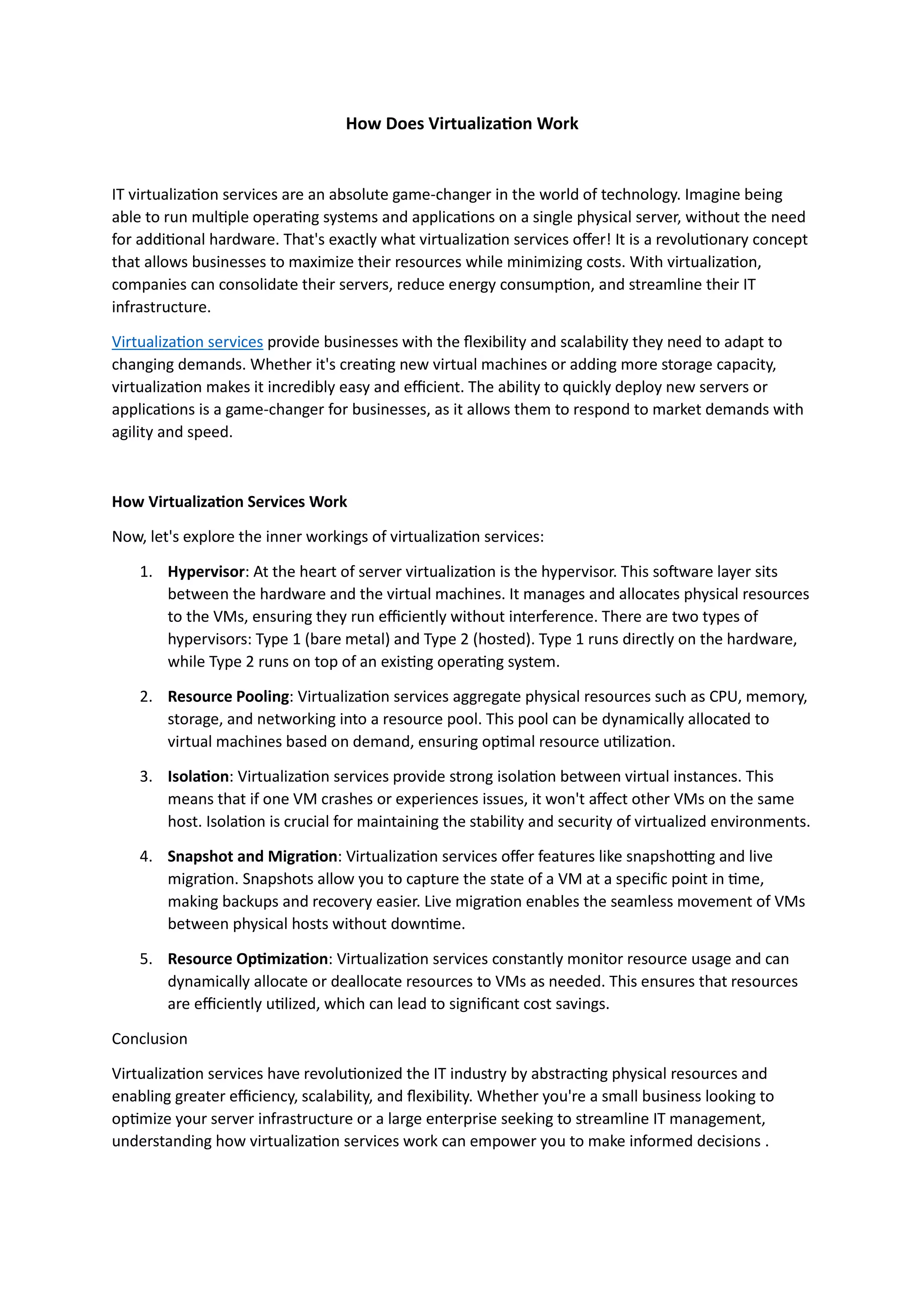 IT virtualization services are an absolute game-changer in the world of technology. Imagine being able to run multiple operating systems and applications on a single physical server, without the need for additional hardware. https://www.itservices.tiinfotech.com/virtualisation
