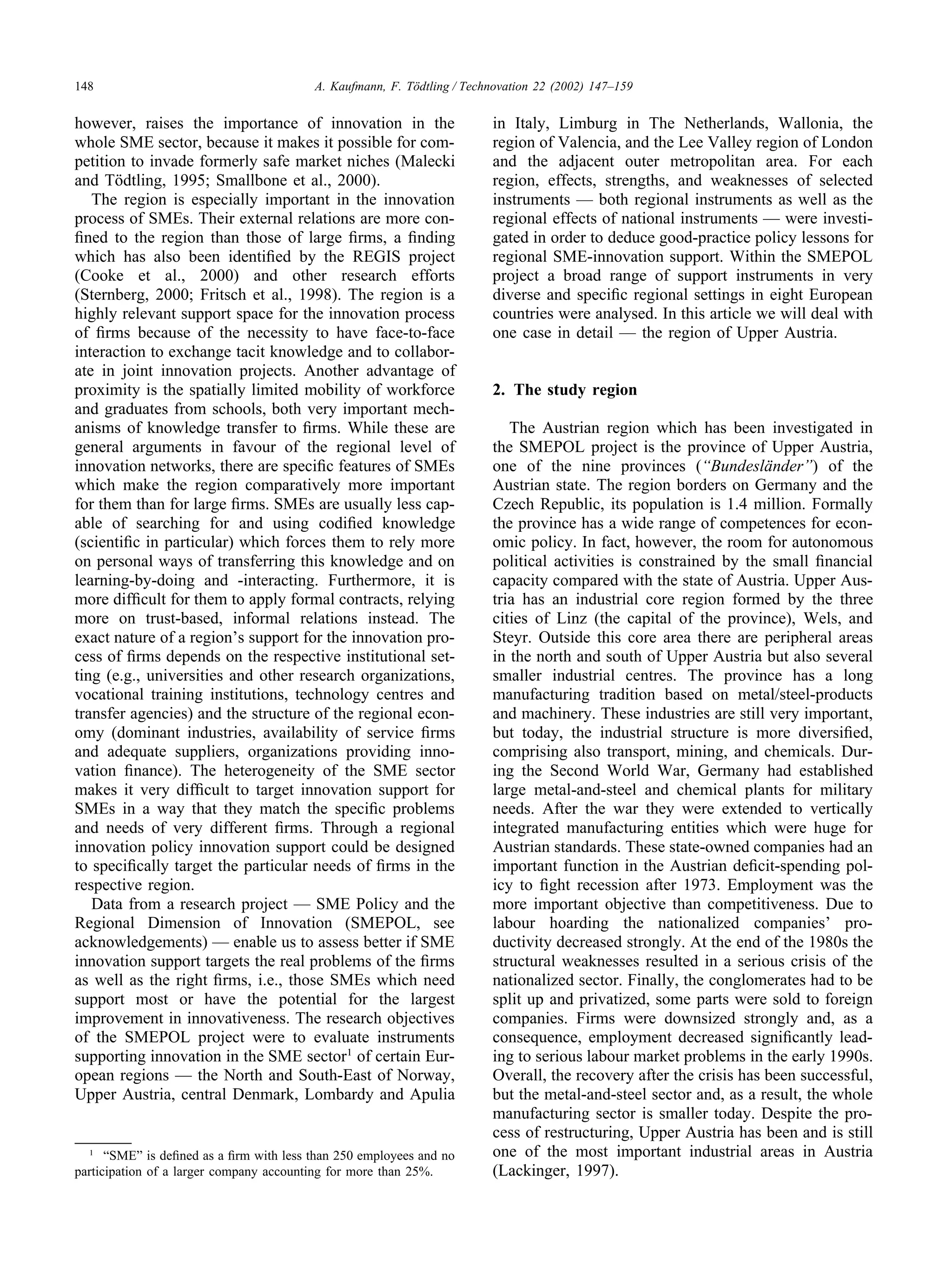 148 A. Kaufmann,F. Tödtling / Technovation 22 (2002) 147–159