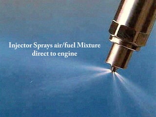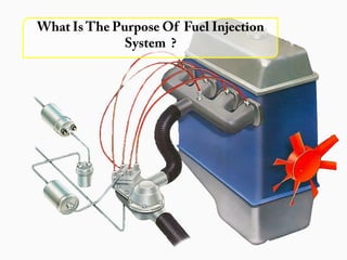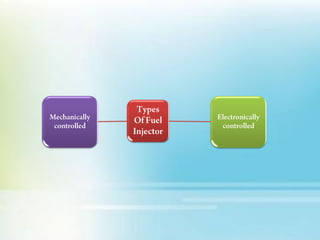 The document discusses the differences between mechanical and electronic fuel injection systems. It highlights issues with mechanical injectors, such as lower power output and increased emissions due to carbon buildup, while emphasizing the advantages of electronic injectors controlled by a microprocessor. Overall, the transition to electronic systems offers better efficiency and precision in fuel management.