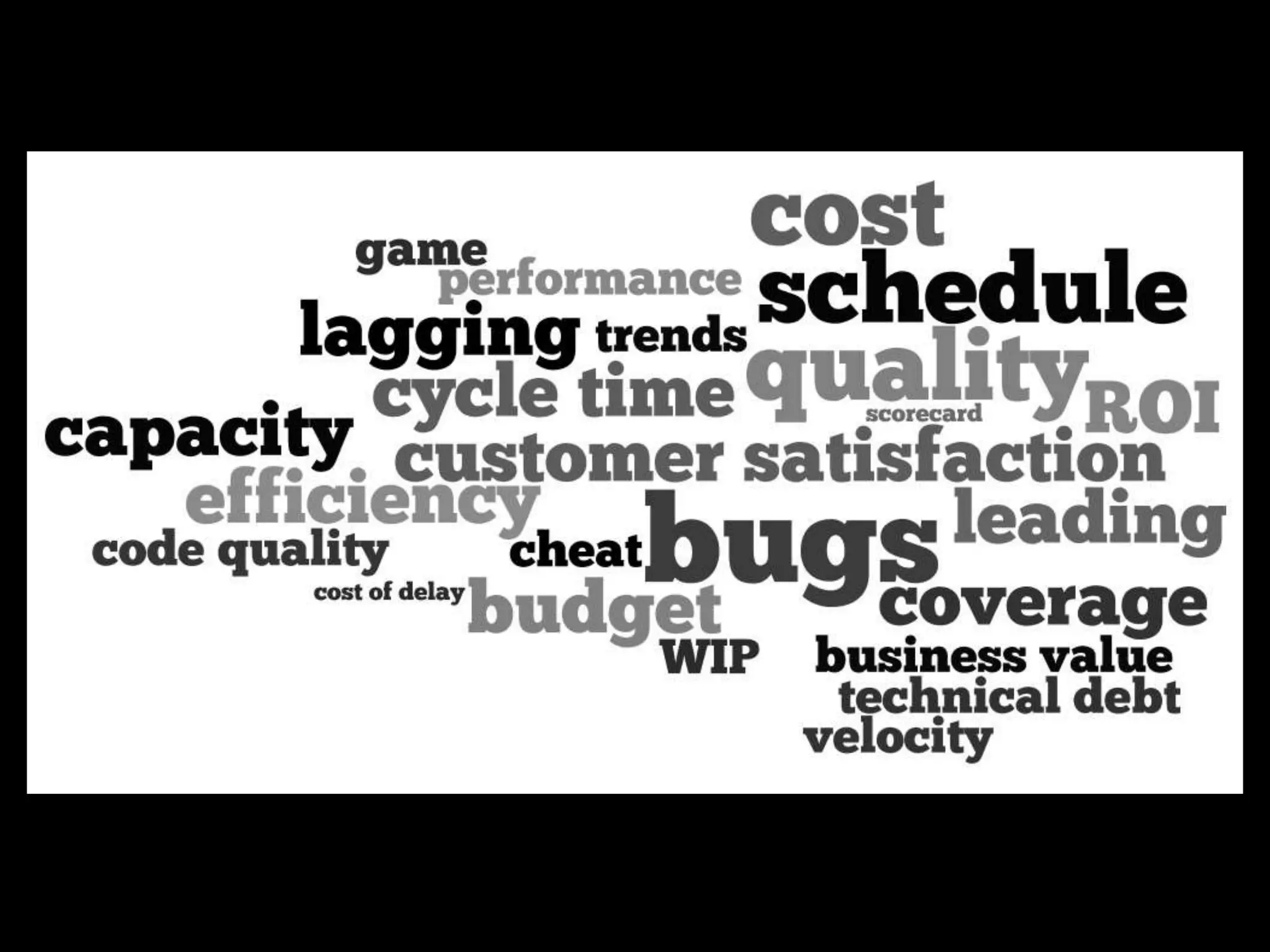 This document discusses metrics in an agile environment. It notes that traditional metrics were designed for a linear world but product development is complex and unpredictable. Instead of trying to control outcomes, we can observe and learn from results to continually improve. The document outlines several types of metrics that can provide insights into business outcomes, product quality, processes, and team health/maturity without attempting to over-control the system. These include metrics like lead time, throughput, work in progress, technical debt, and happiness indexes. Cumulative flow diagrams and control charts are also discussed as ways to visualize workflow and identify improvement opportunities.
