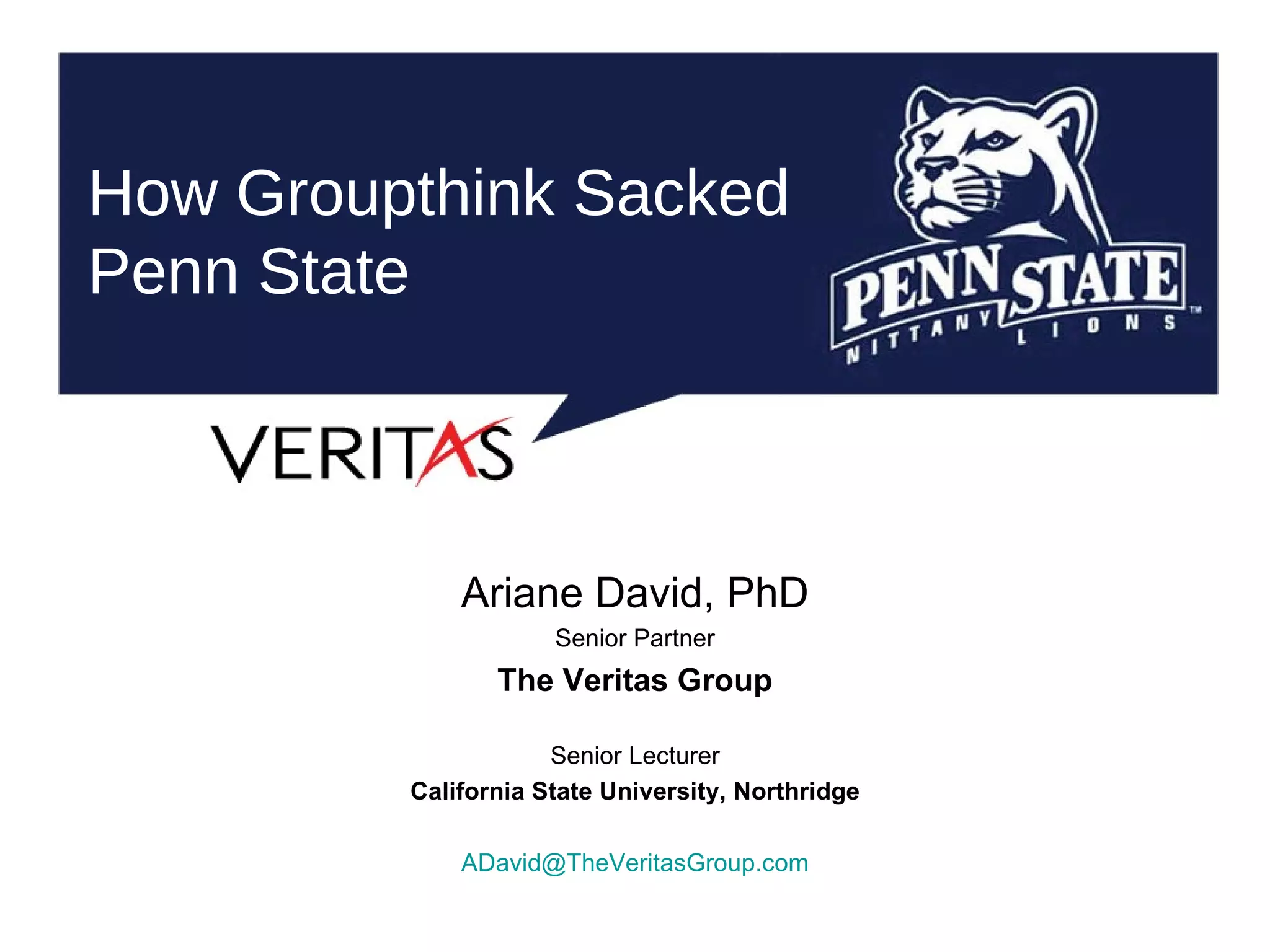 The document discusses how groupthink dynamics within the highly cohesive Penn State football program likely contributed to the mishandling of the Jerry Sandusky child abuse scandal. It describes groupthink as a phenomenon that can occur in exclusive groups where members prioritize loyalty to the group over outside concerns. The author argues this helps explain why key figures like Joe Paterno and Mike McQueary failed to adequately address Sandusky's abuse, instead protecting the football program. New rules will not fix deeper issues like this that enable such problems to recur within insular elite groups.