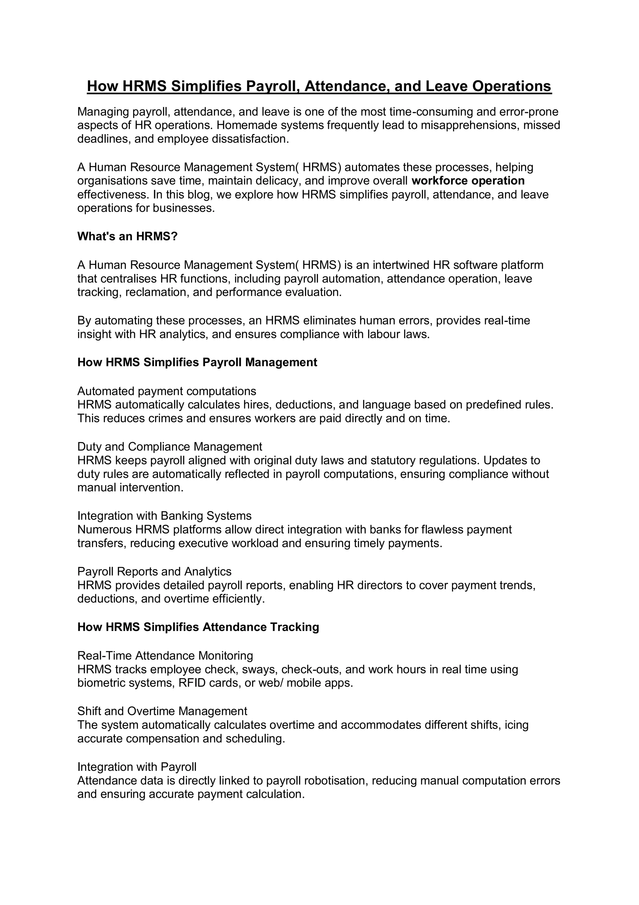 A Human Resource Management System( HRMS) automates these processes, helping