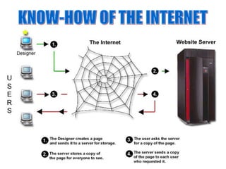 The document provides an introduction to the internet, explaining what it is, its history of development, and how it works. The internet is an international network of computers connected by wires, cables, radio waves and satellites that allows computers to share information almost instantly from anywhere in the world. It was originally created by scientists in the US in the 1960s and called ARPANET, growing to connect hundreds of computers and establish the basis for today's worldwide internet. The document then discusses how computers and programs like browsers and search engines facilitate use of the internet for activities like email, e-commerce, education and entertainment.