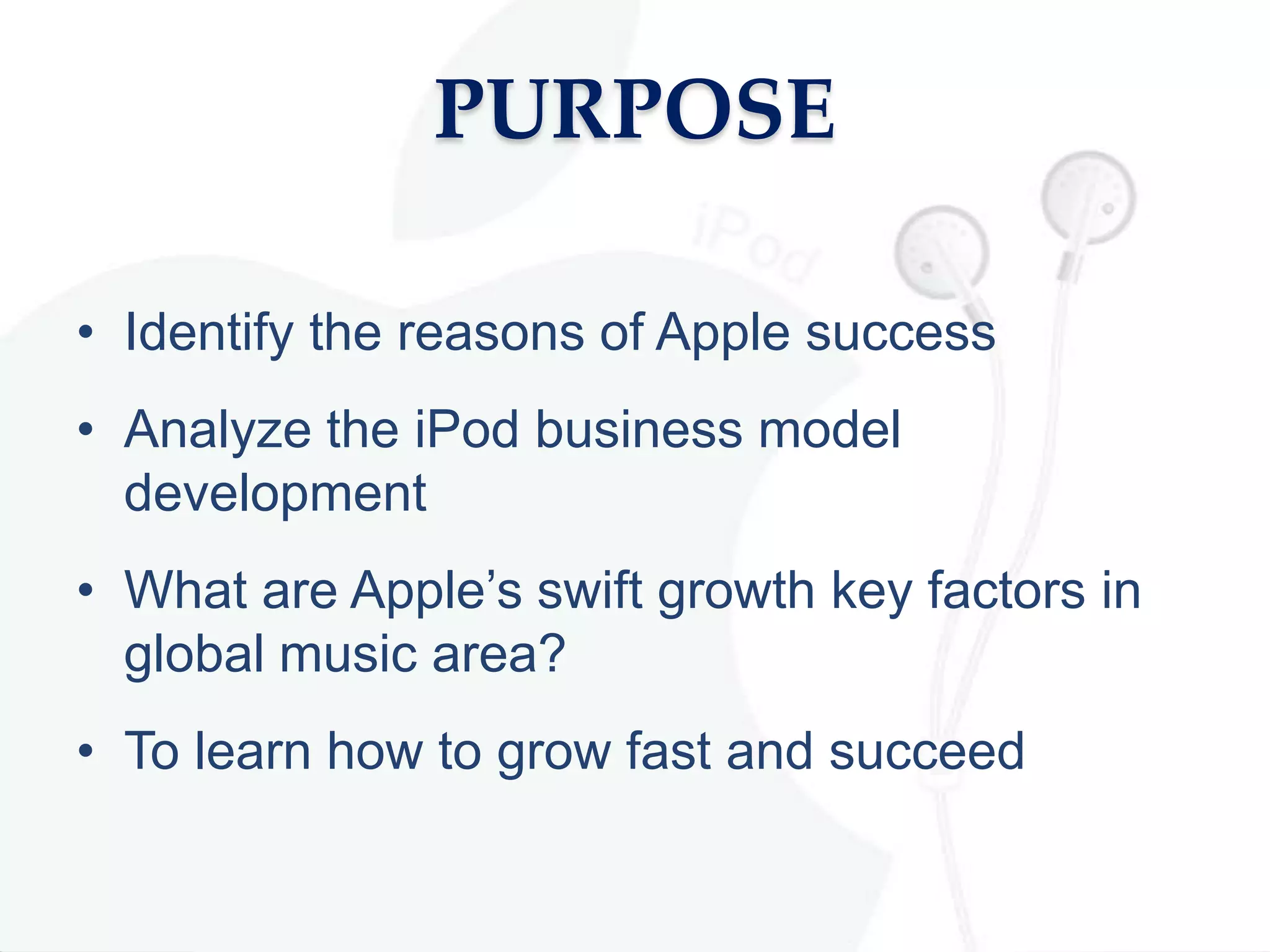 This document outlines Apple's success with the iPod music player over three time periods from 2001-2010. It details Apple's business model, which involved partnering with other companies to develop hardware and software. The iPod offered consumers an easy to use portable music device holding 1000 songs in a small size. Key to Apple's growth was the iTunes store, which generated significant revenue streams. By 2010, iPod sales accounted for 24.5% of Apple's net sales and helped establish Apple as one of the most admired companies worldwide.