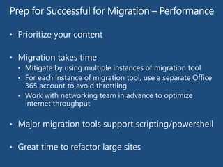 The document outlines the MSIT Office 365 migration Phase I, detailing the migration of substantial data, including 36.41 TB across multiple sites and sub-sites. It highlights the benefits of cloud-based solutions, emphasizing cost savings, improved collaboration, and the transition away from traditional SharePoint infrastructure. The migration process involves a structured backup and restoration strategy, with the aim of minimizing downtime and ensuring smooth data transition to SharePoint Online.