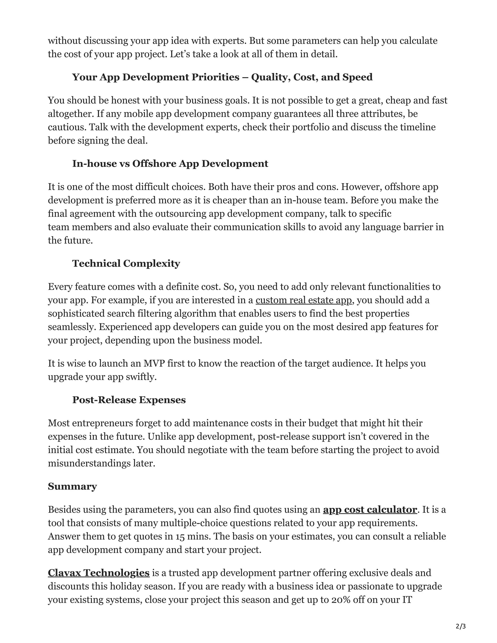 The average cost to build an app ranges from $5,000 to $50,000 and can take 12 to 20 weeks to complete. Several factors influence app development costs, including priorities around quality, cost and speed tradeoffs; choosing in-house vs offshore development; technical complexity; and post-release maintenance expenses. Getting accurate cost estimates requires discussing your app idea with development experts to understand desired features and development requirements.