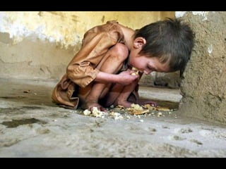 The document discusses being grateful for the blessings of food, water, and nature despite some people suffering without these necessities. It encourages sharing this message to increase awareness of global suffering and promote prayer and aid for those in need. It also asks readers to reflect on their own fortune compared to less fortunate children and to not waste resources like food or water.